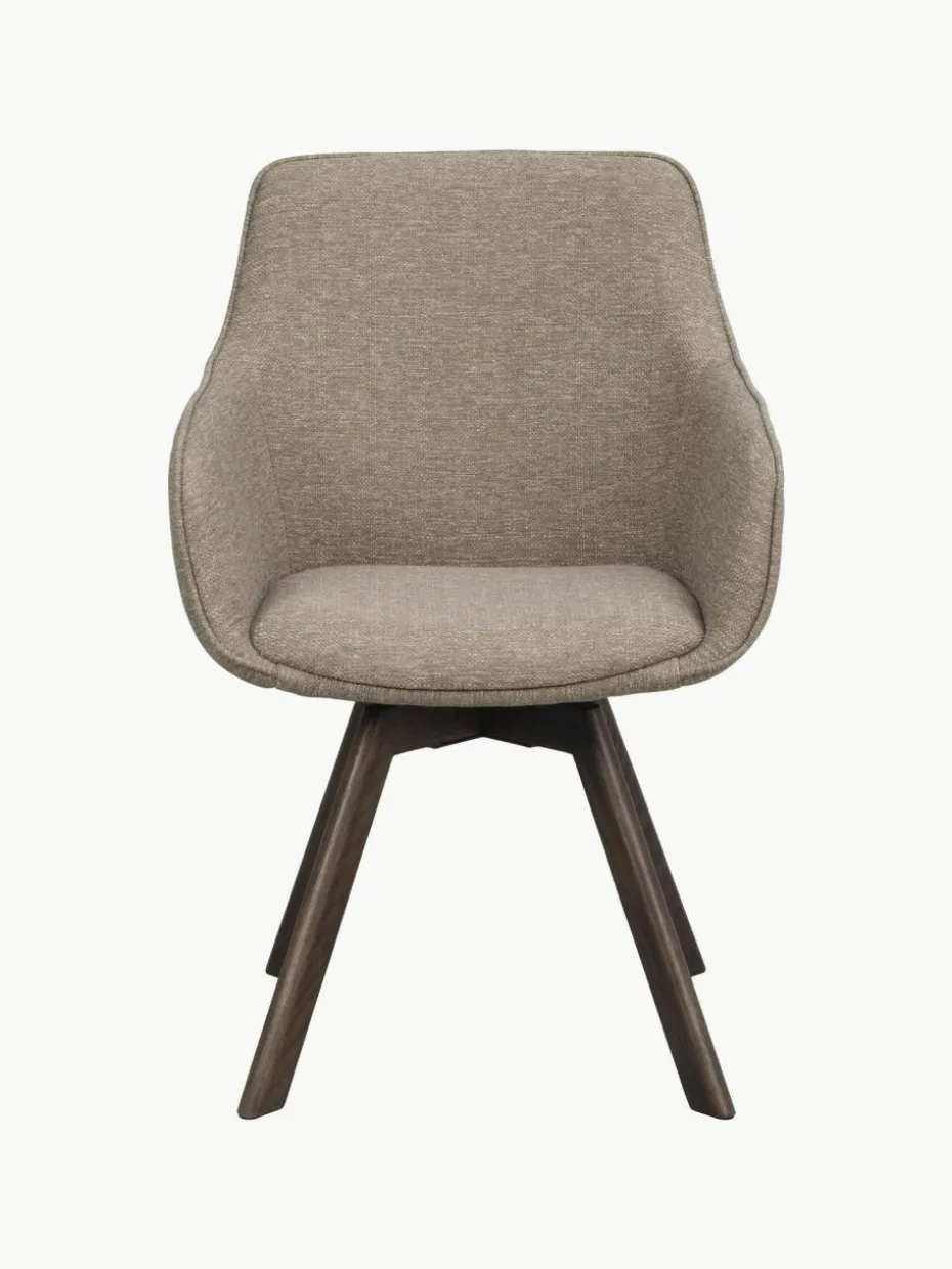Der konturierte, gepolsterte Sitz und die hohen Armlehnen des Stuhls sorgen für Komfort und ein gemütliches Sitzerlebnis.r