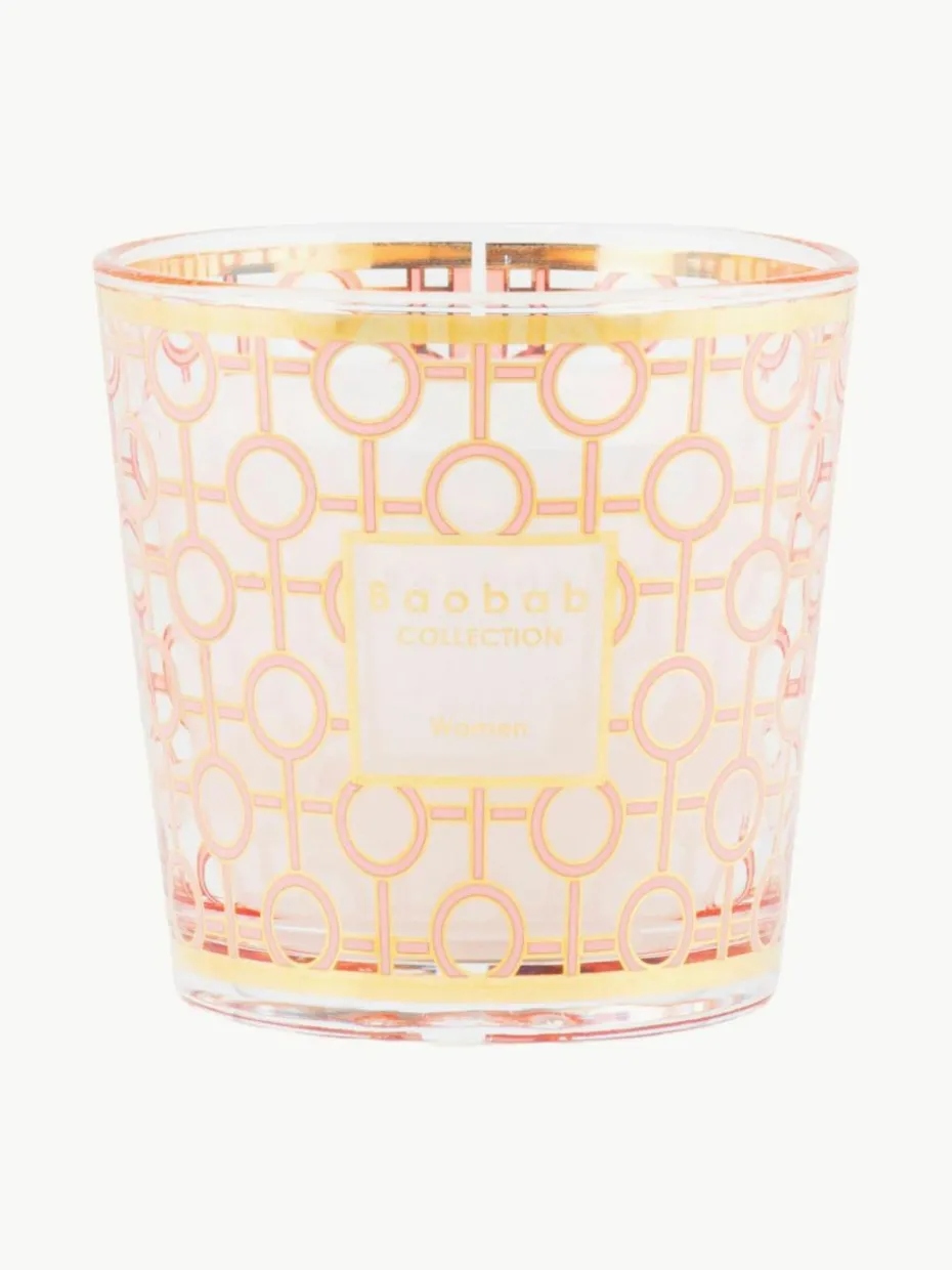 Eine Kerze für Frauen, die etwas Elegantes suchen. Diese WOMEN Kerze kommt mit einem dekorierten Glas-Behälter, der in einem rosa Design gehüllt ist. Das grafische Design dieser schönen Kerze repräsentiert das feminine Zeichen. Suchst Du nach duftenden Geschenken mit Rosenduft, das einen moschusartigen, durch und durch femininen Duft verströmt? Suche nicht weiter.
