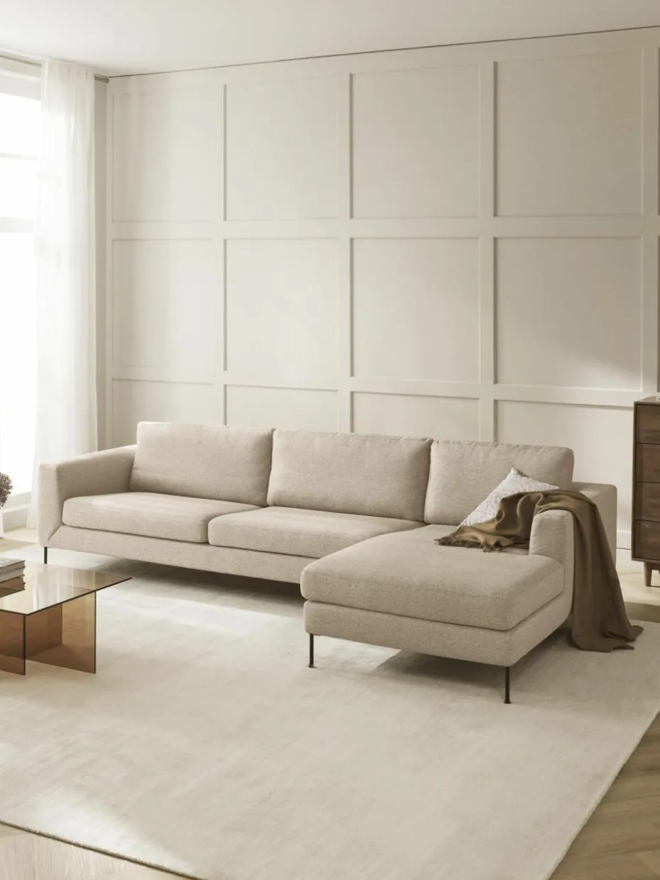 Wenn Du frontal vor dem Sofa stehst, befindet sich das Eckteil auf der rechten Seite.“,“pdp_care_label“:“Das Produkt wird platzsparend flach verpackt geliefert und benötigt nach dem Auspacken als Montageaufwand den Aufbau des kompletten Produkts.
