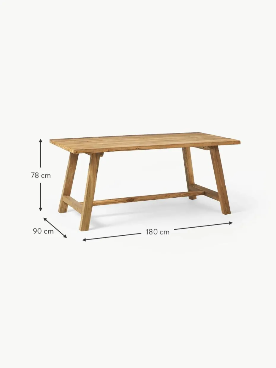 Dieser Tisch eignet sich für bis zu sechs Personen.“,“pdp_care_label“:“Wenn Teakholzmöbel unbehandelt bleiben, bildet sich auf der Oberfläche mit der Zeit eine dünne, silber–graue Schicht. Das Holz mindestens einmal jährlich mit der rauen Seite eines Topfreinigers und etwas warmem Wasser abreiben. Soll der ursprüngliche Holzfarbton Deiner Gartenmöbel beibehalten werden, bietet sich eine Behandlung mit einem geeigneten Teaköl an.