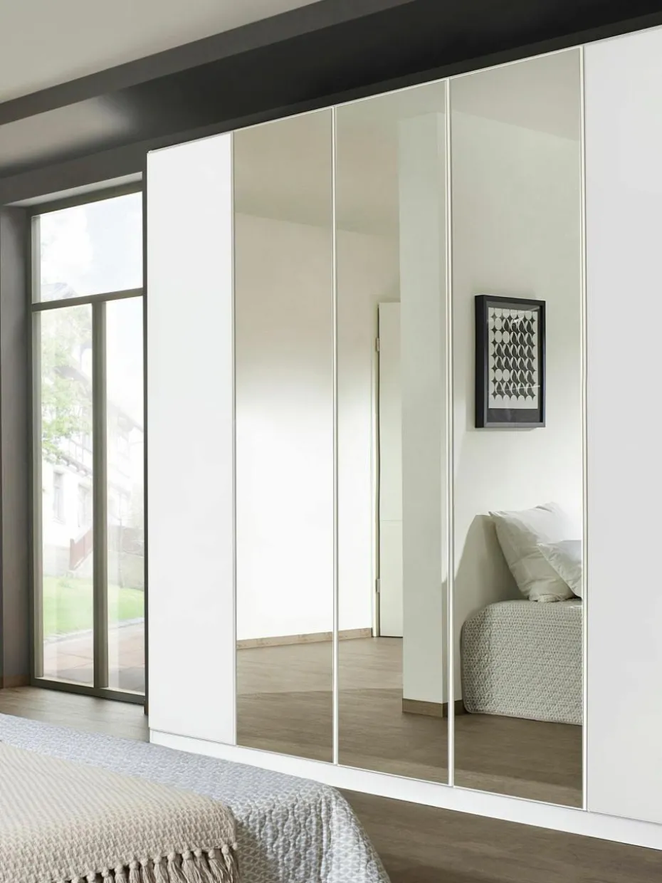 Ausgestattet mit Regalböden, Kleiderstangen und Schubkasteneinsätzen entsteht eine durchdachte Stauraumlösung für verschiedenste Ansprüche zum Aufbewahren, Organisieren und Strukturieren. Wingview überzeugt allerdings nicht nur im geöffneten Zustand – die praktischen Spiegelelemente auf der Schrankfront sorgen für optische Weite und ermöglichen dir nach dem Öffnen der Türen einen perfekten Rundumblick und Outfitcheck.