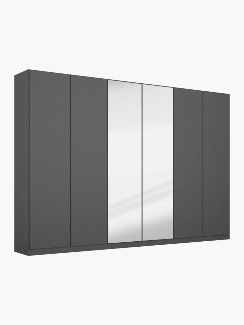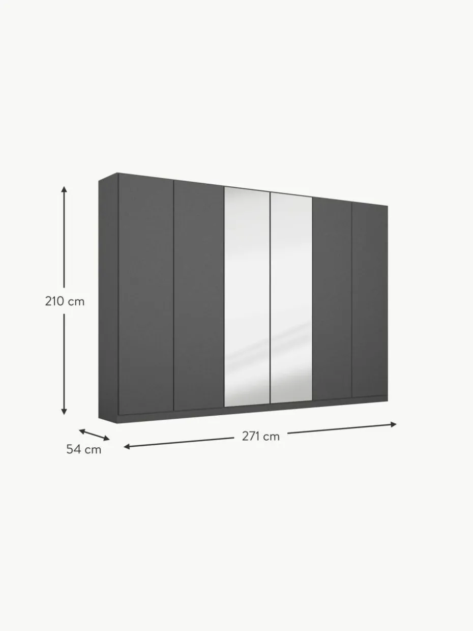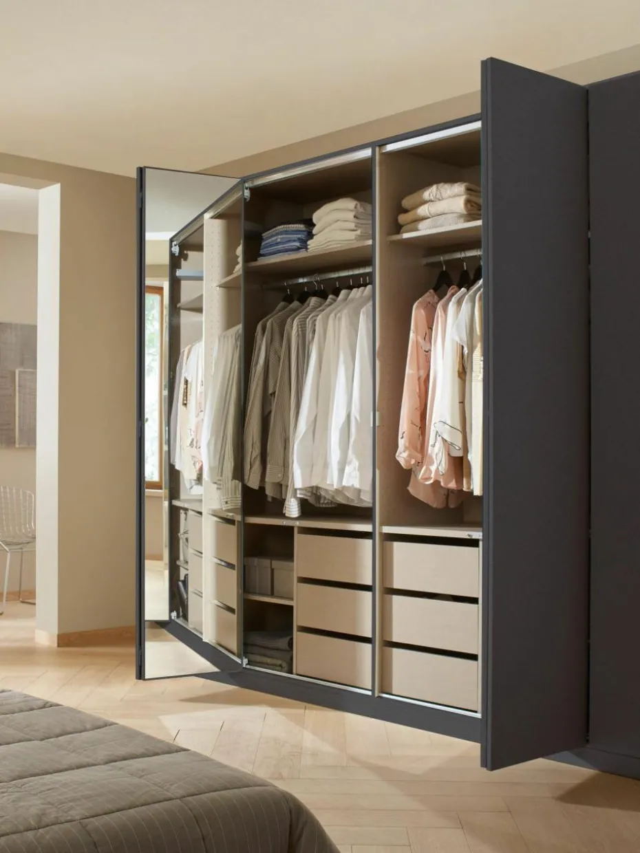 Ausgestattet mit Regalböden, Kleiderstangen und Schubkasteneinsätzen entsteht eine durchdachte Stauraumlösung für verschiedenste Ansprüche zum Aufbewahren, Organisieren und Strukturieren. Wingview überzeugt allerdings nicht nur im geöffneten Zustand – die praktischen Spiegelelemente auf der Schrankfront sorgen für optische Weite und ermöglichen dir nach dem Öffnen der Türen einen perfekten Rundumblick und Outfitcheck.