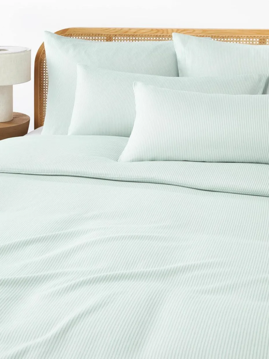 Der Flanell-Bettdeckenbezug verfügt über einen Knopfverschluss und wurde in Portugal gefertigt.