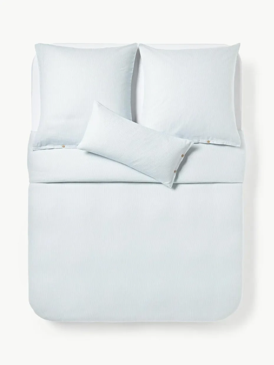 Der Flanell-Bettdeckenbezug verfügt über einen Knopfverschluss und wurde in Portugal gefertigt.