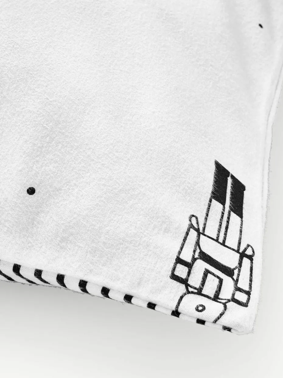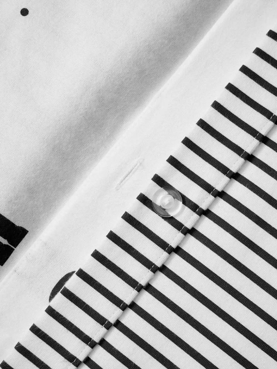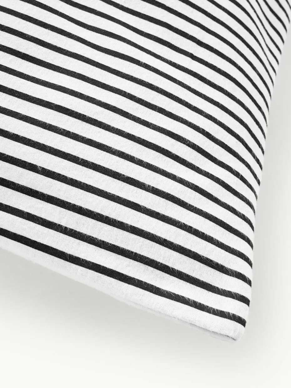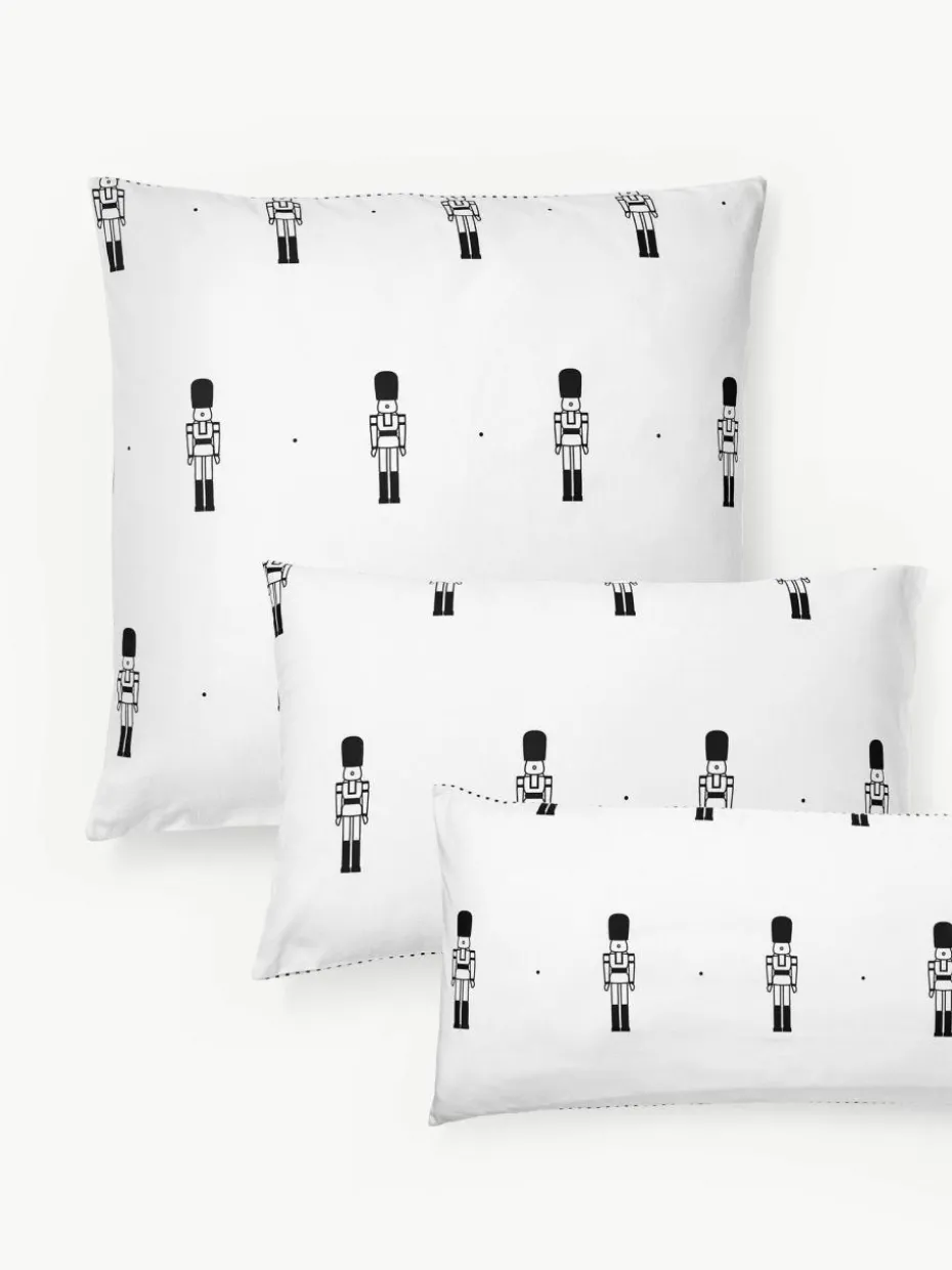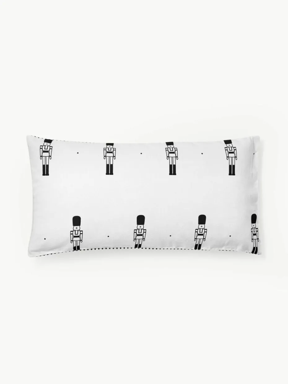 Bedruckter Flanell-Wendekissenbezug mit Nussknacker-Motiv auf der Vorderseite und getreifter Rückseite verfügt über einen Knopfverschluss und wurde in Portugal gefertigt.