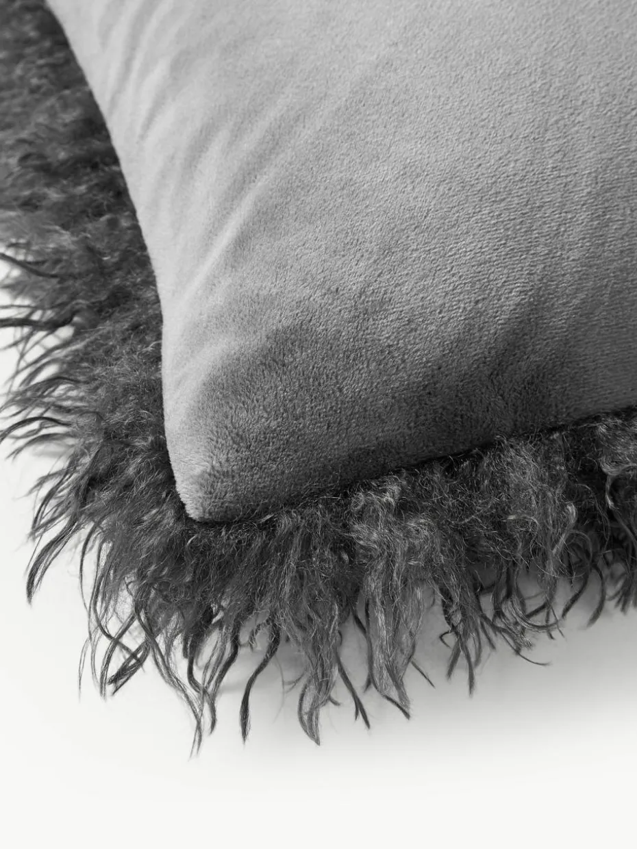 Flauschige Kunstfell-Kissenhülle Morten, gelockt