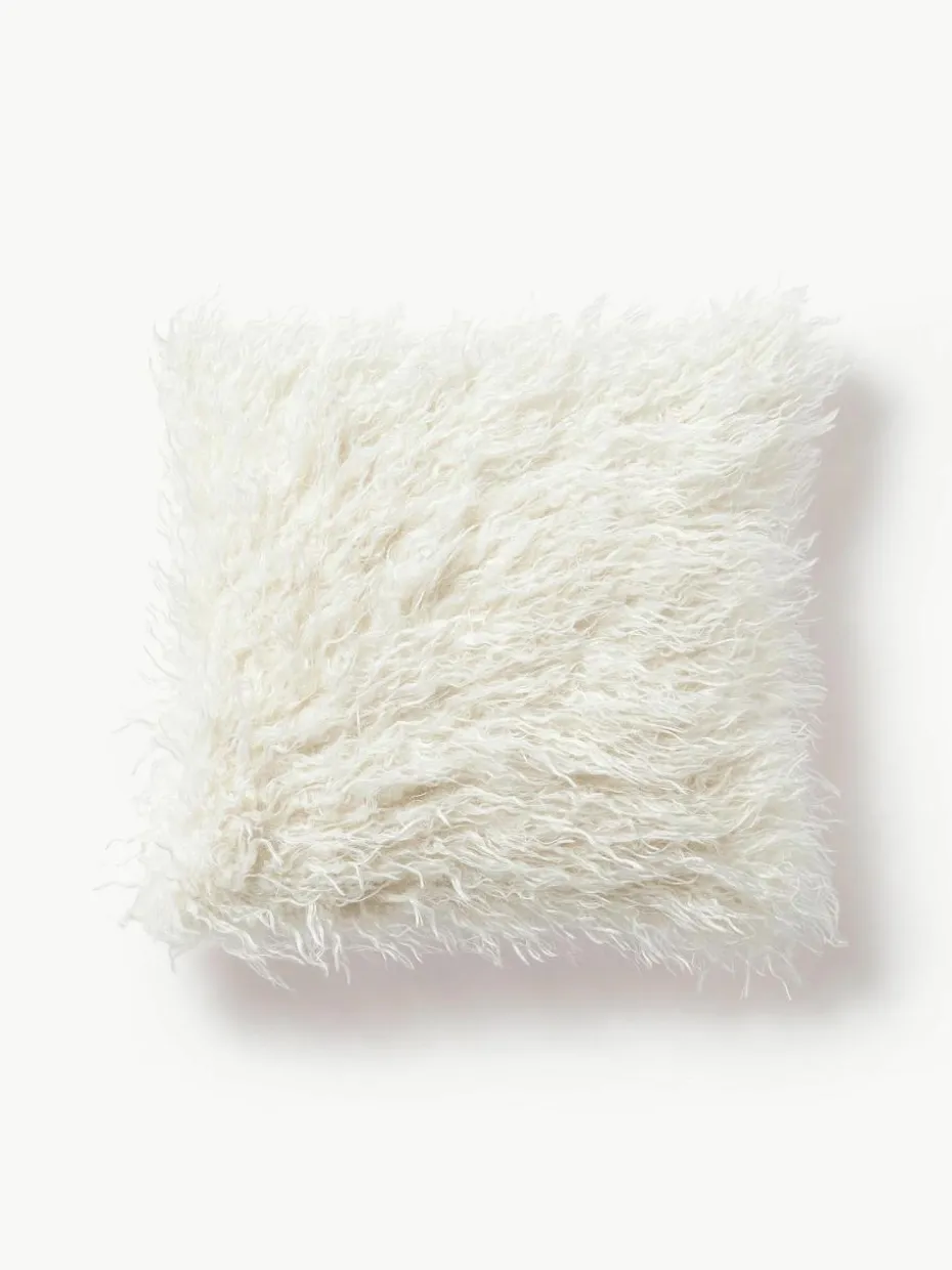 Flauschige Kunstfell-Kissenhülle Morten, gelockt
