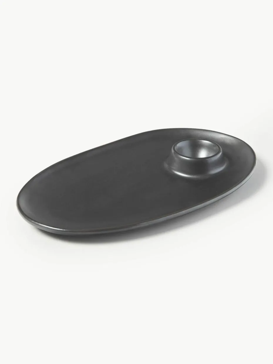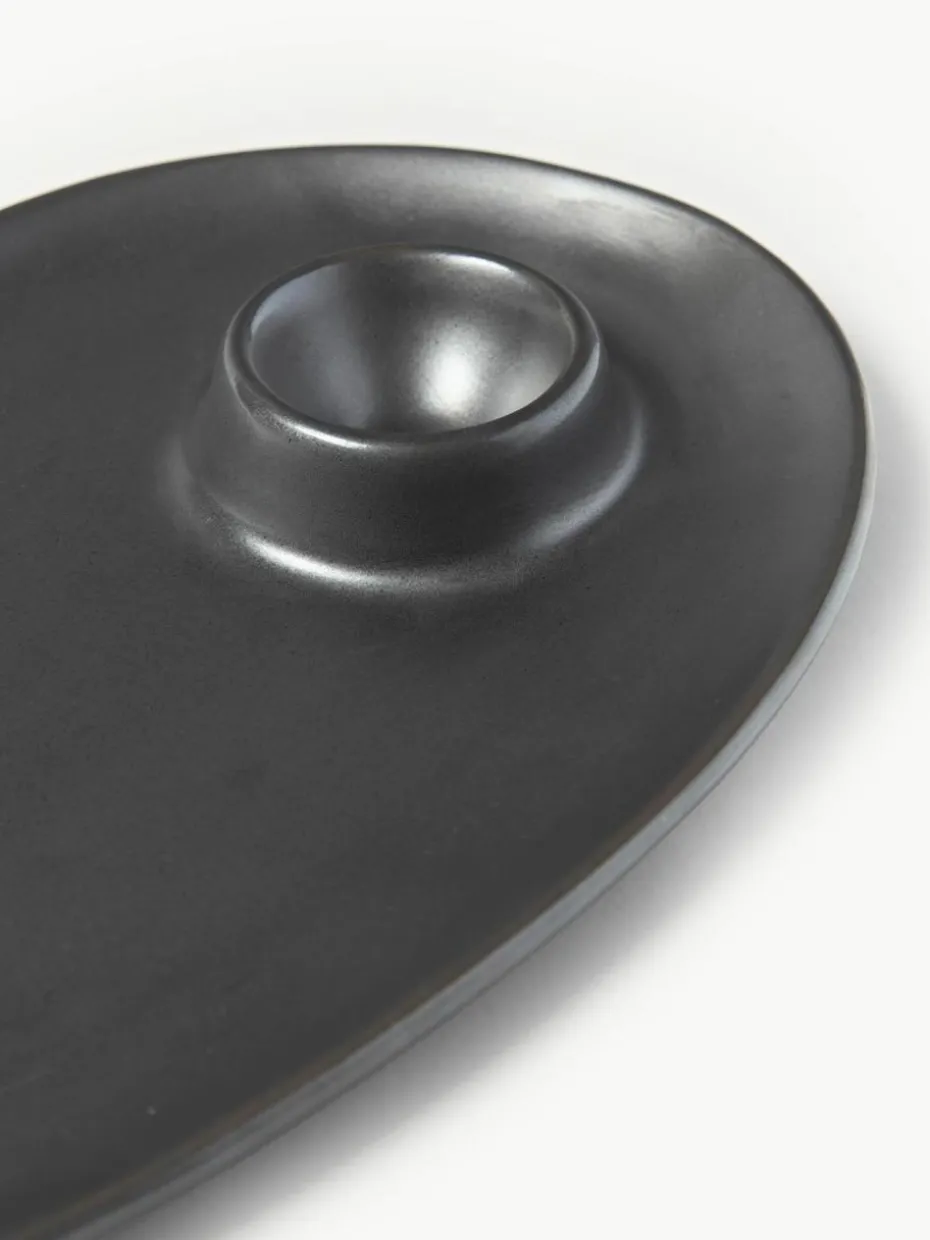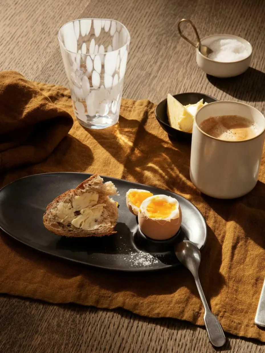 Die halbmatte Glasur aller Teile sorgt für einen einzigartigen Ausdruck. Dieser ovale Teller mit integriertem Eierbecher stellt auf jedem Frühstückstisch eine perfekte Ergänzung dar und bietet zudem ausreichend Platz für den morgendlichen Toast. Da es für den Eierbecher auf der Unterseite jeweils eine Einbuchtung gibt, können die Teller einfach gestapelt werden, wenn sie nicht in Gebrauch sind.“,“pdp_care_label“:“Spülmaschinengeeignet