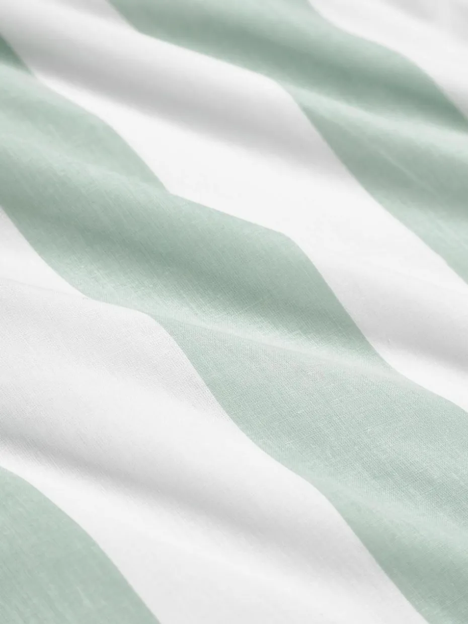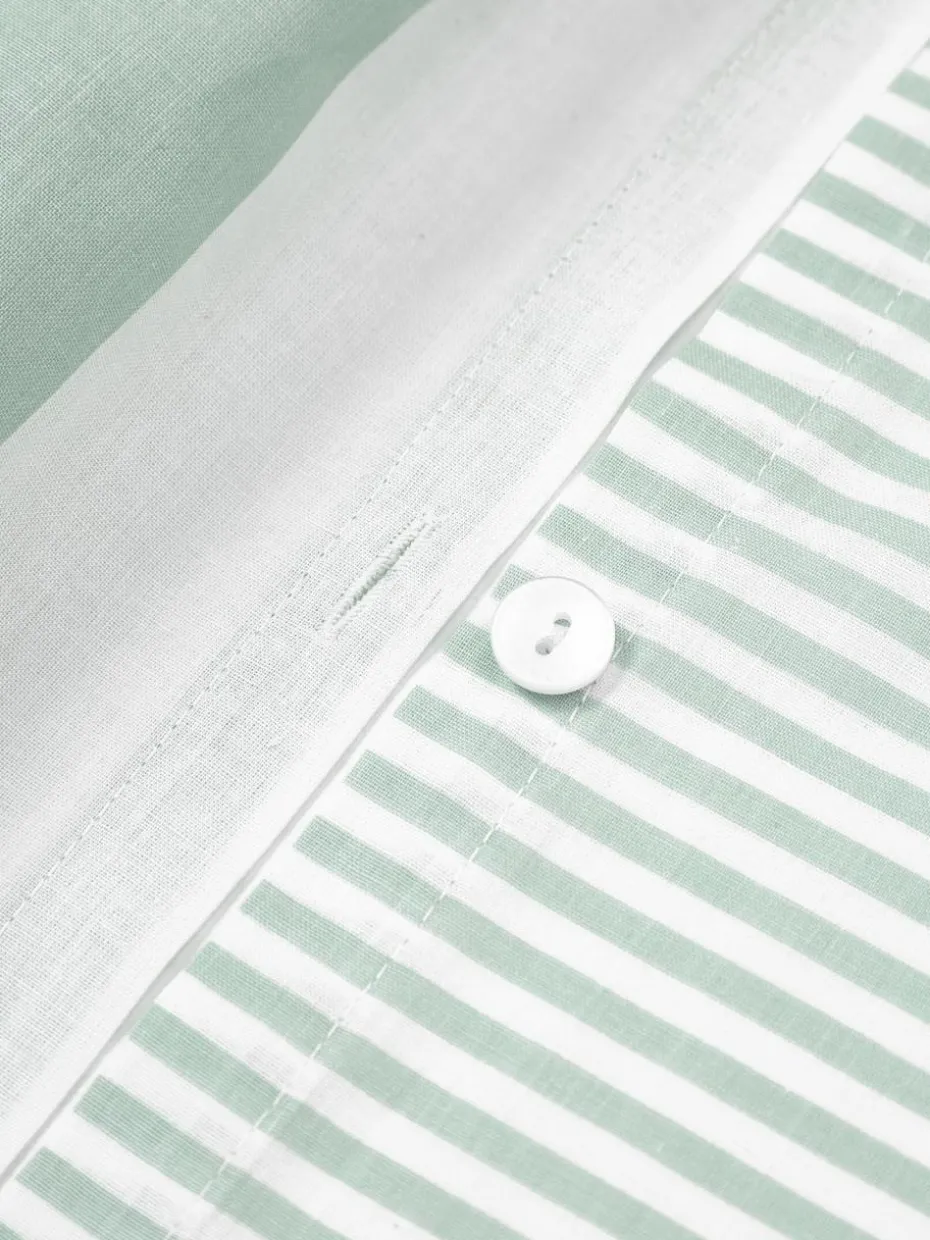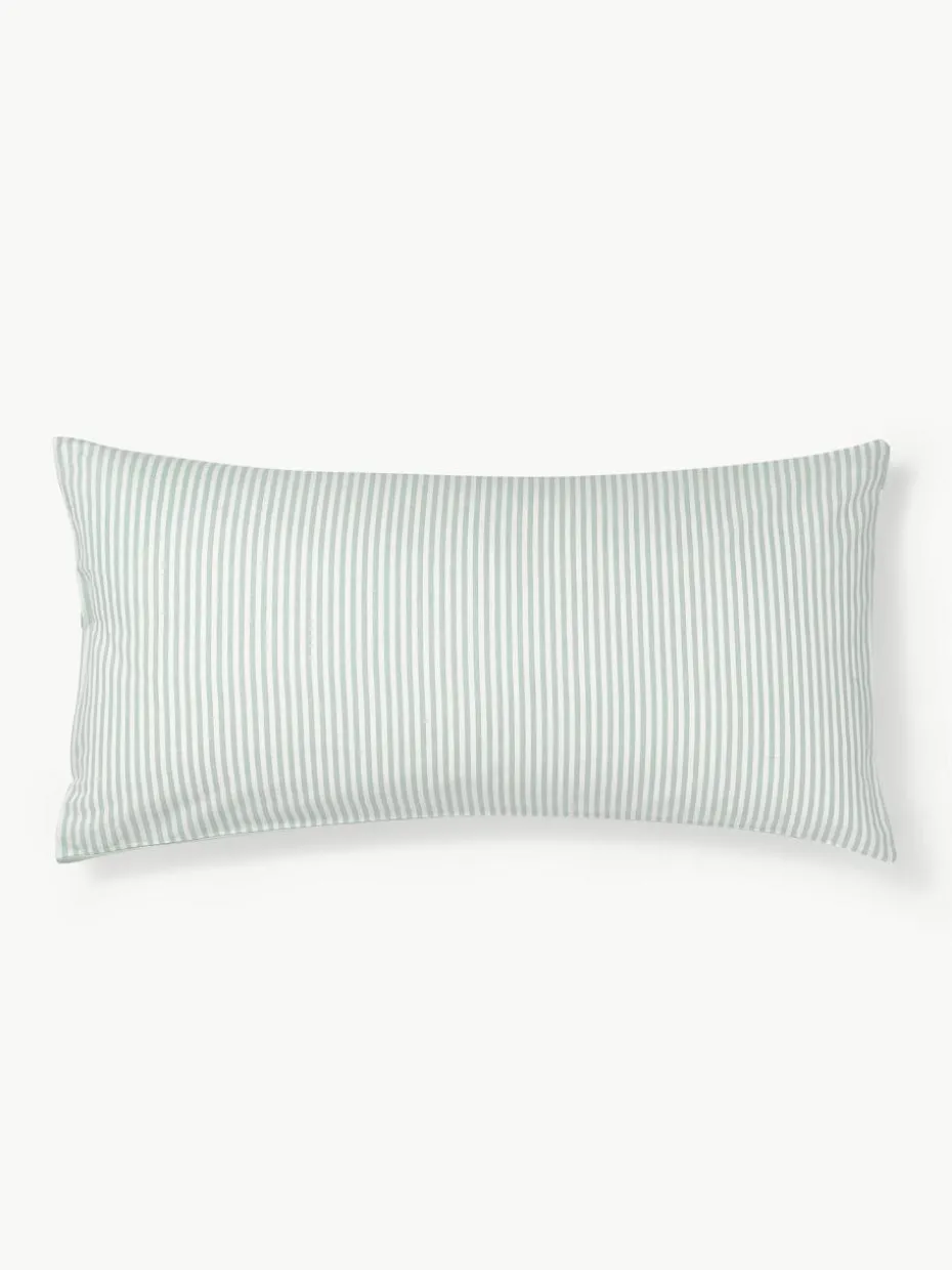 Der Baumwoll-Wendebettdeckenbezug sorgt für den modernen Look im Schlafzimmer: Die Vorderseite mit breiten Querstreifen, die Rückseite fein gestreift.