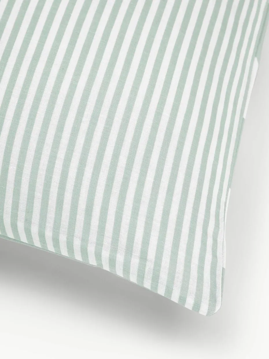 Der Wendekissenbezug verfügt über einen Knopfverschluss.
