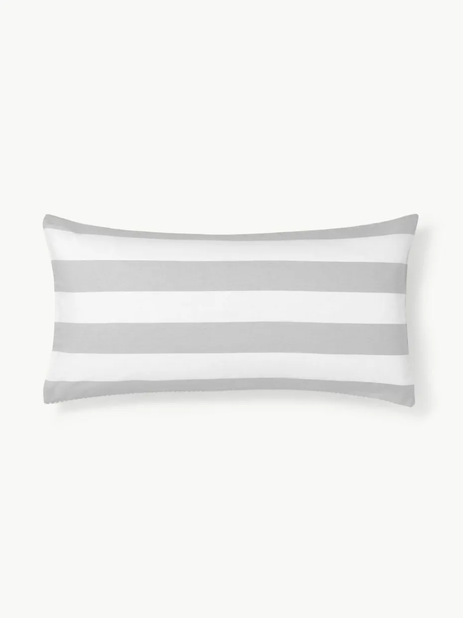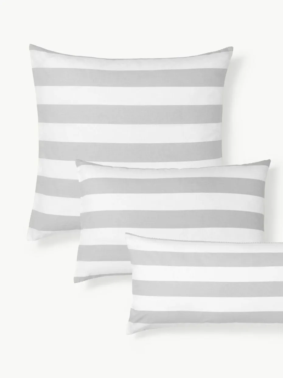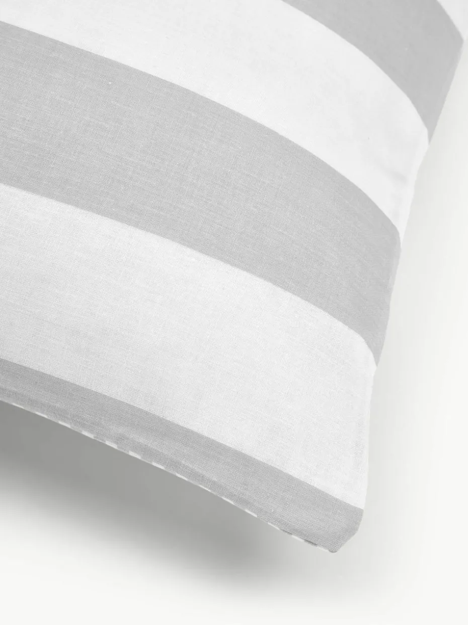 Der Baumwoll-Wendebettdeckenbezug sorgt für den modernen Look im Schlafzimmer: Die Vorderseite mit breiten Querstreifen, die Rückseite fein gestreift.