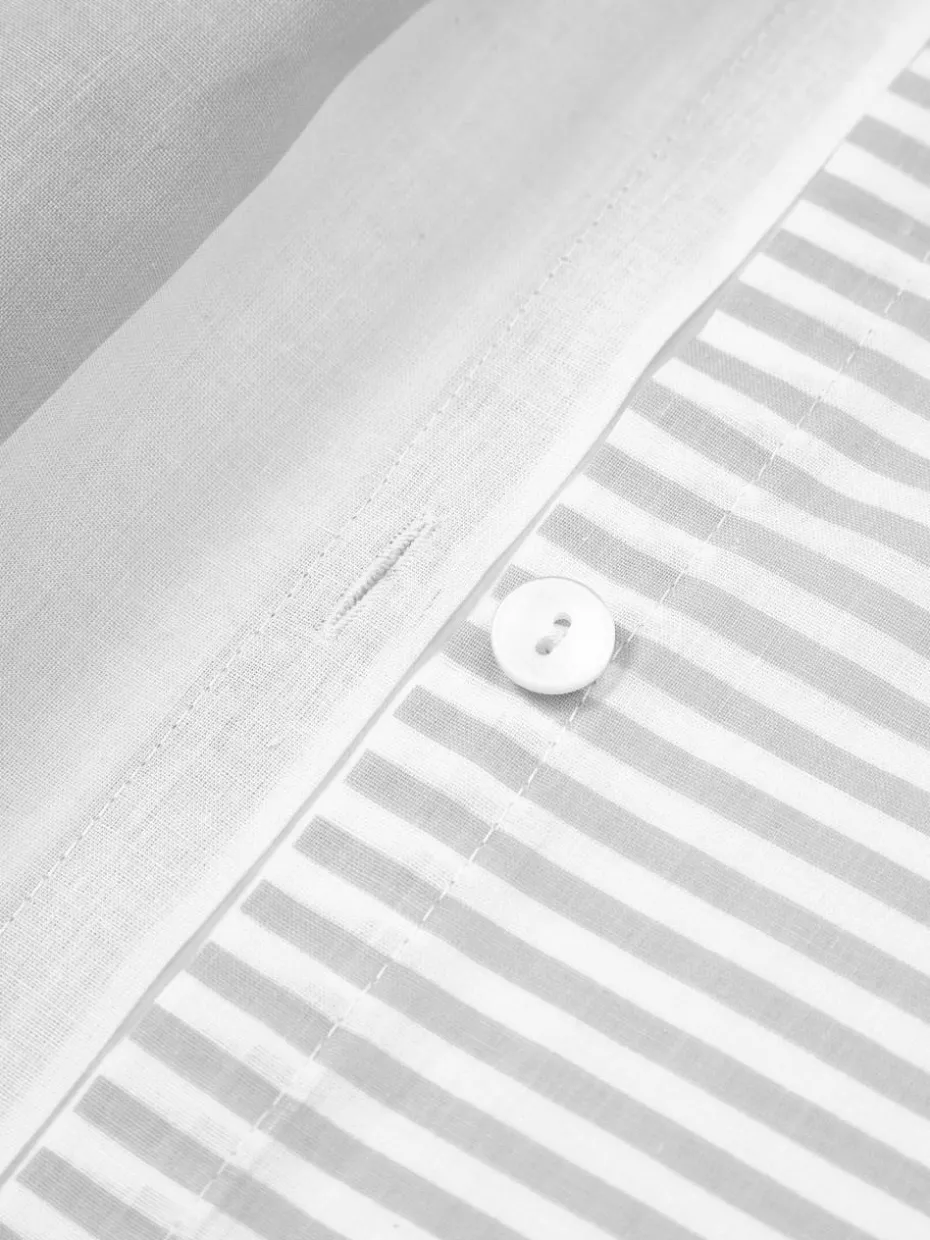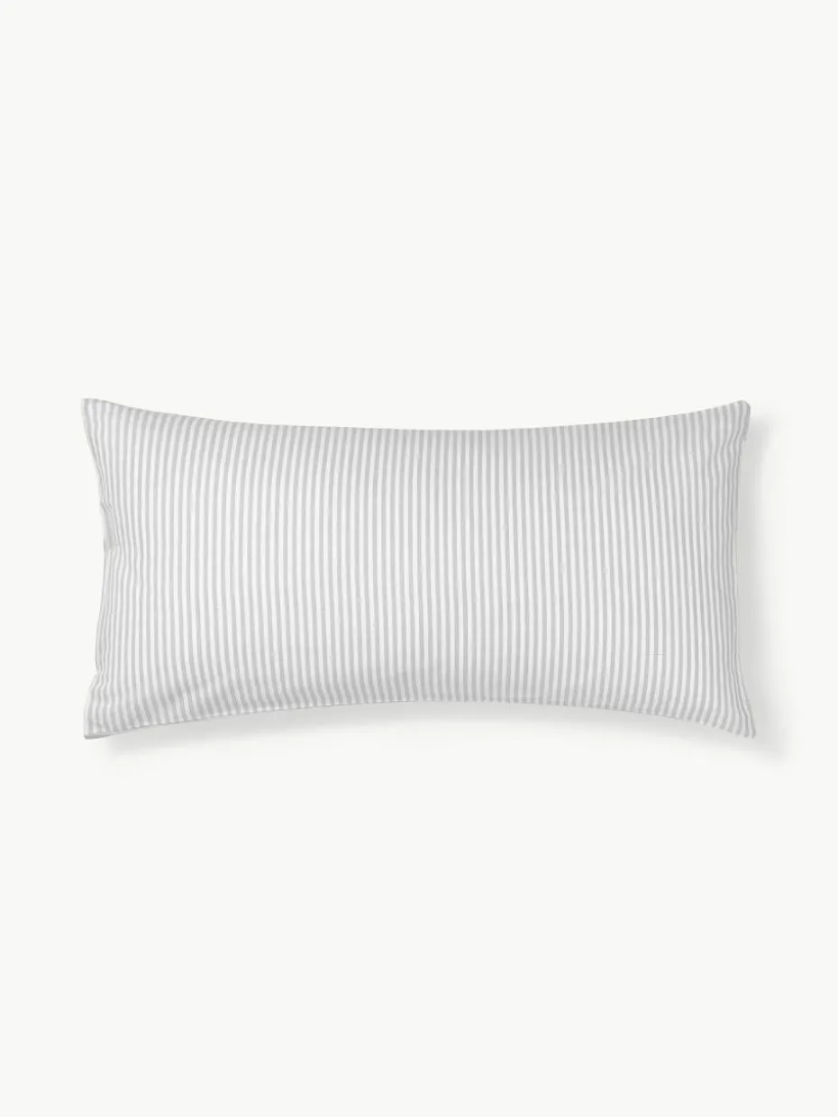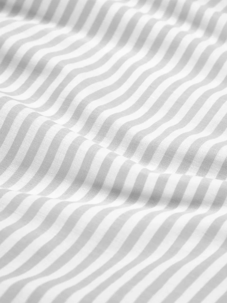 Der Baumwoll-Wendebettdeckenbezug sorgt für den modernen Look im Schlafzimmer: Die Vorderseite mit breiten Querstreifen, die Rückseite fein gestreift.
