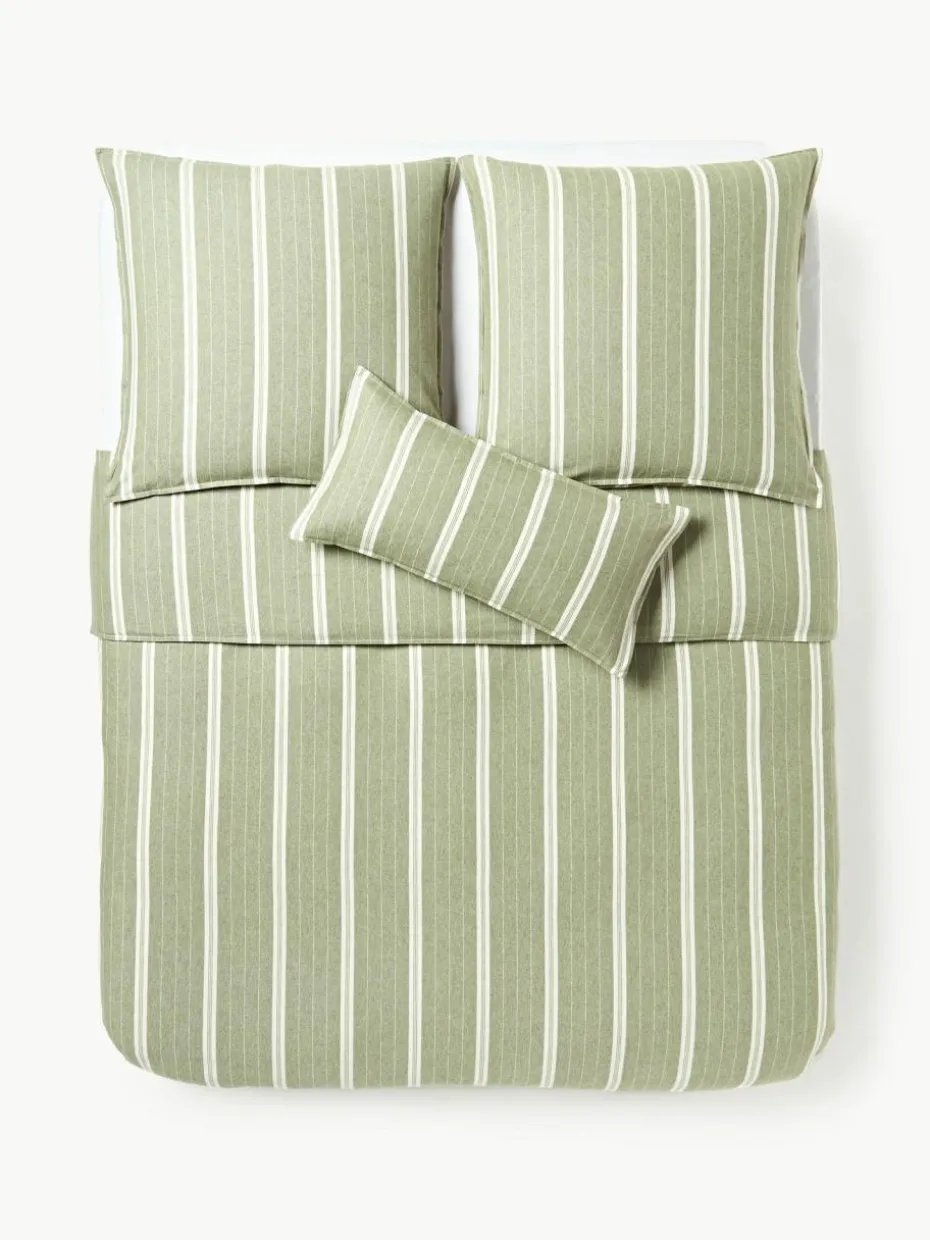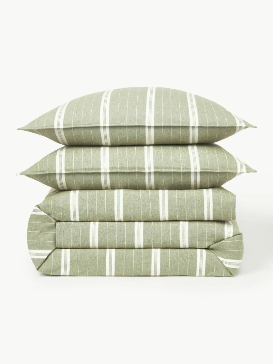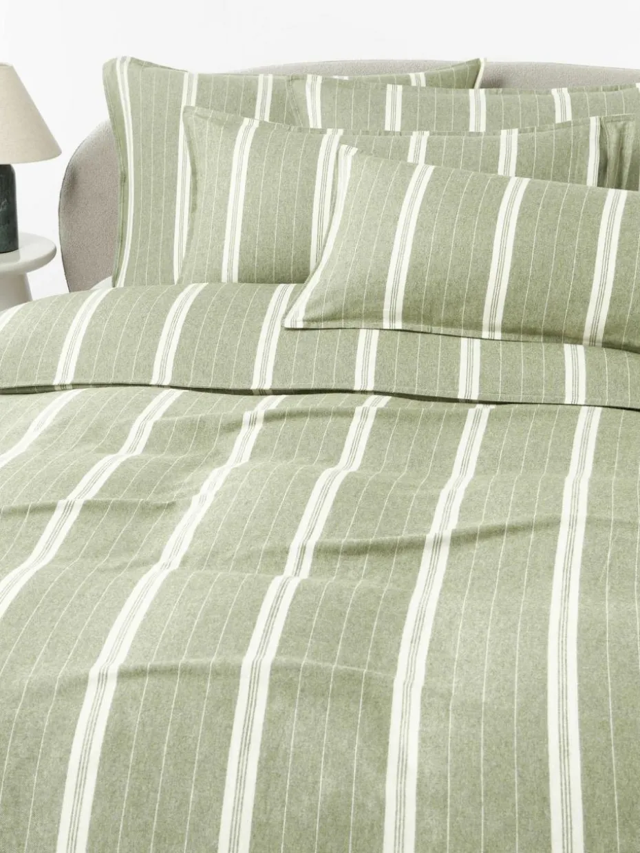 Der Flanell-Bettdeckenbezug verfügt über einen Knopfverschluss und wurde in Portugal gefertigt.