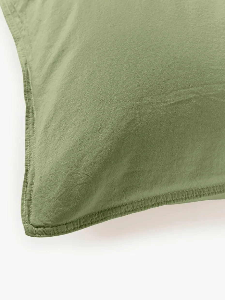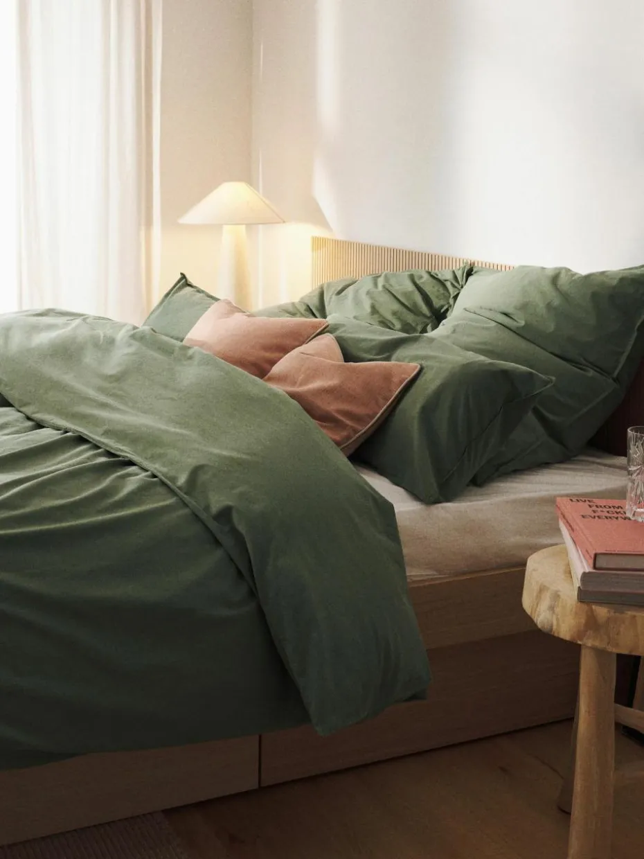 Der unifarbene Baumwollperkal-Bettdeckenbezug verfügt über einen Knopfverschluss und wurde in Portugal gefertigt.