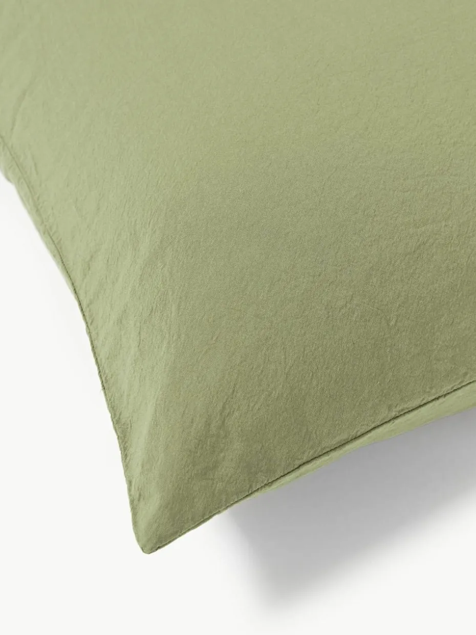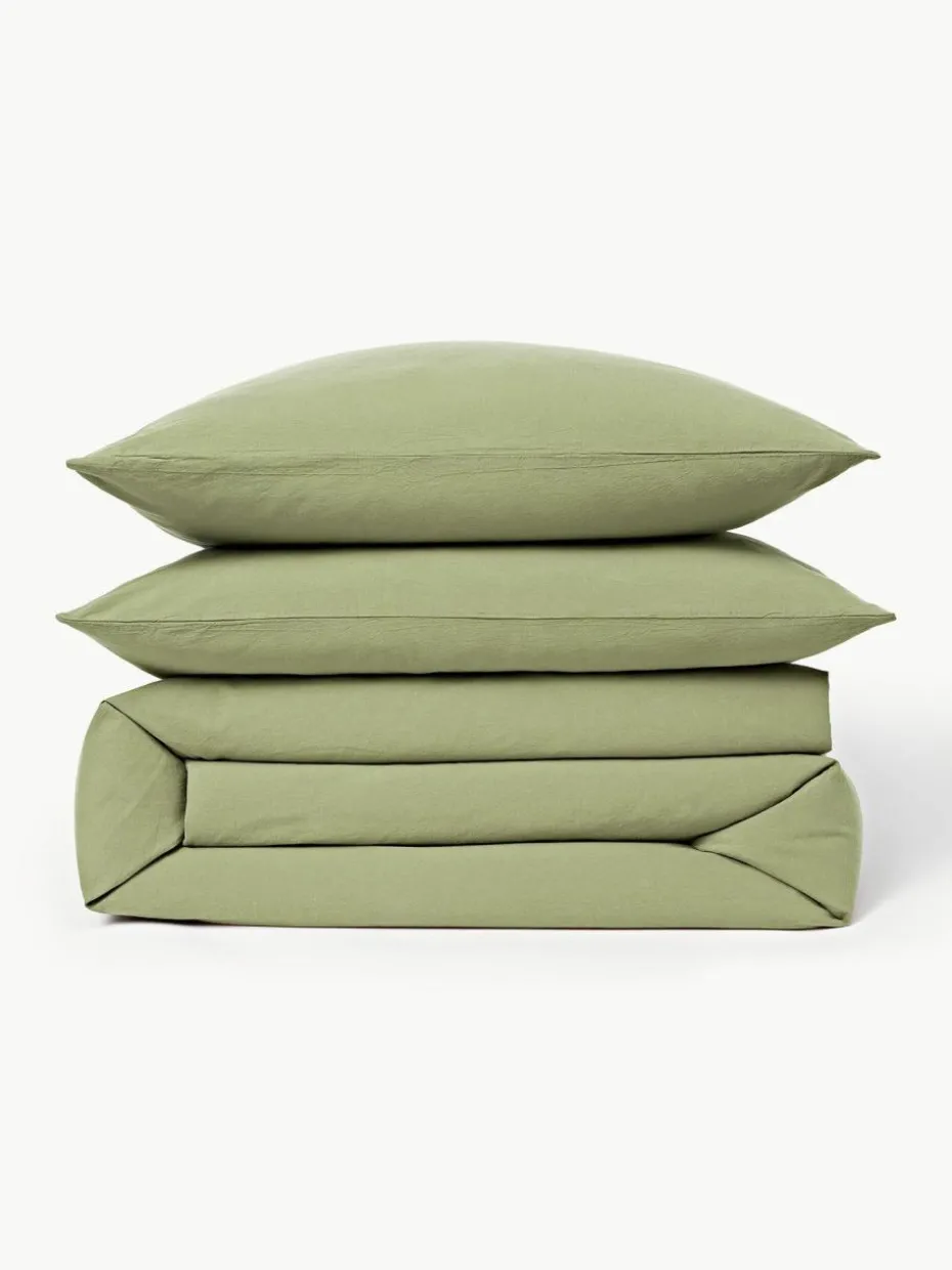 Der Bettdeckenbezug verfügt über einen Schleifenverschluss und wurde in Portugal gefertigt.
