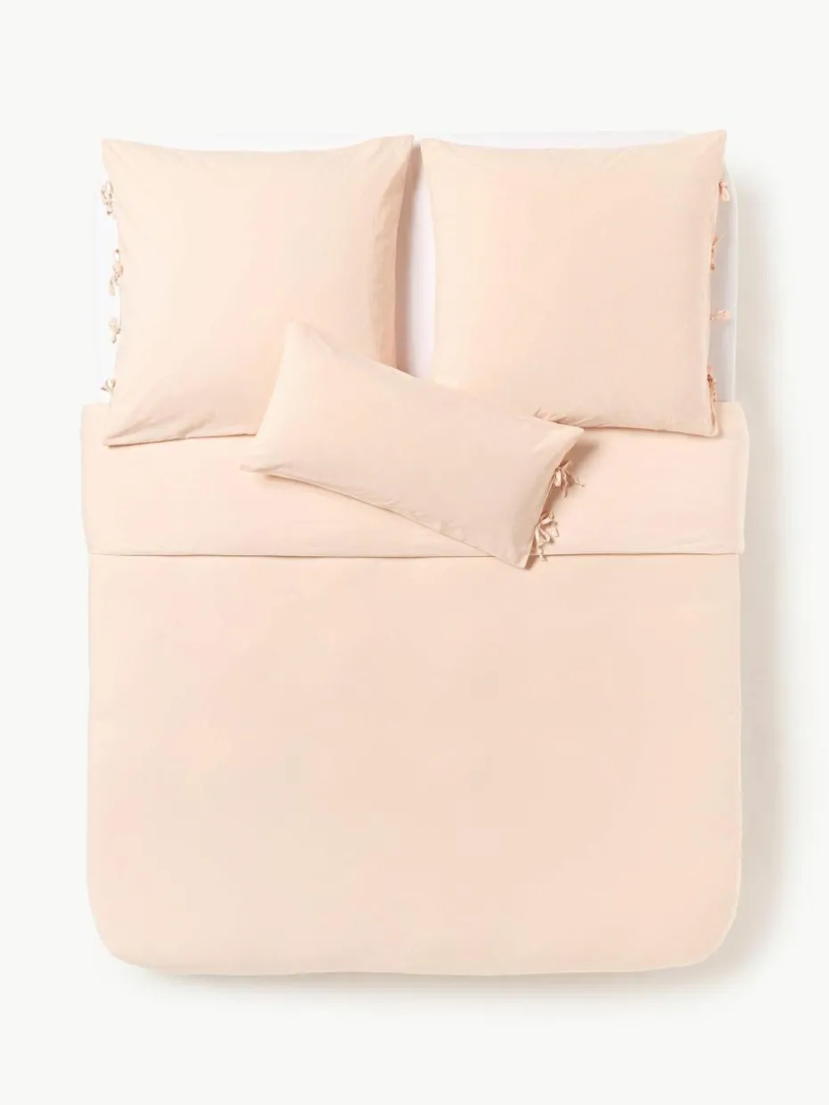 Der Bettdeckenbezug verfügt über einen Schleifenverschluss und wurde in Portugal gefertigt.