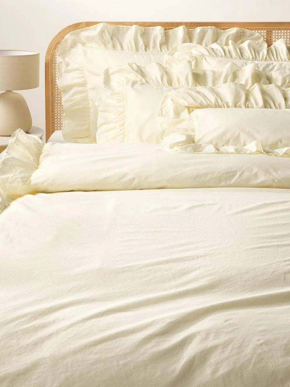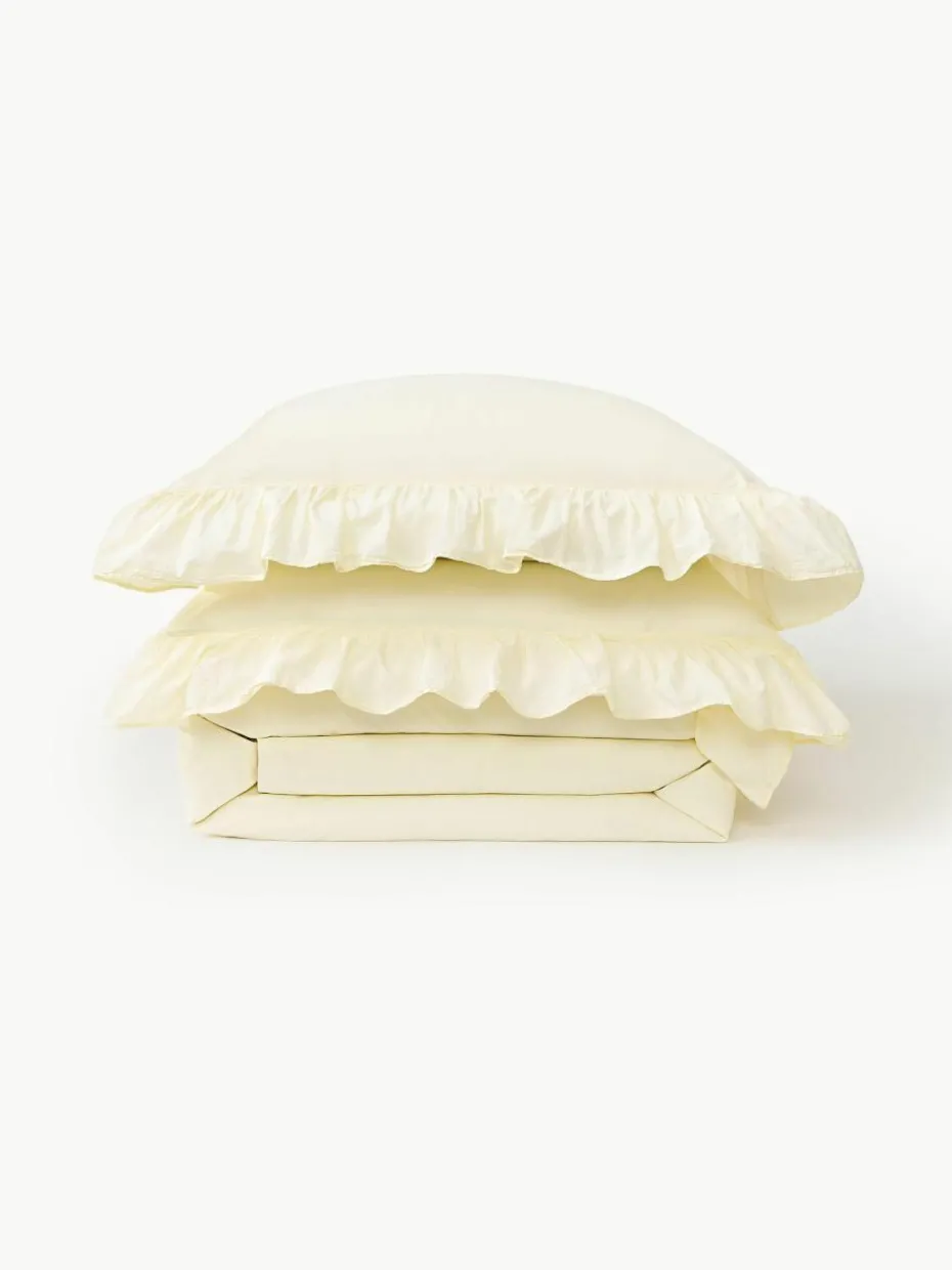 Der Baumwoll-Bettdeckenbezug verfügt über einen Knopfverschluss und wurde in Portugal gefertigt.