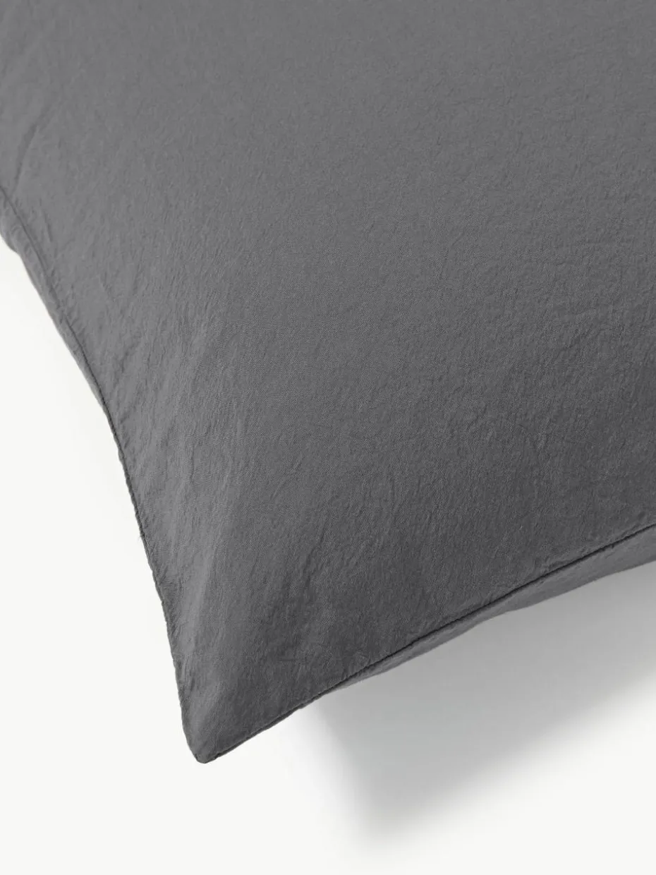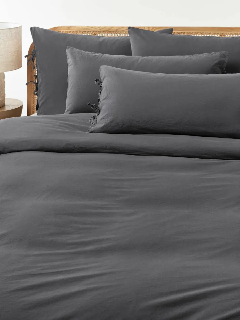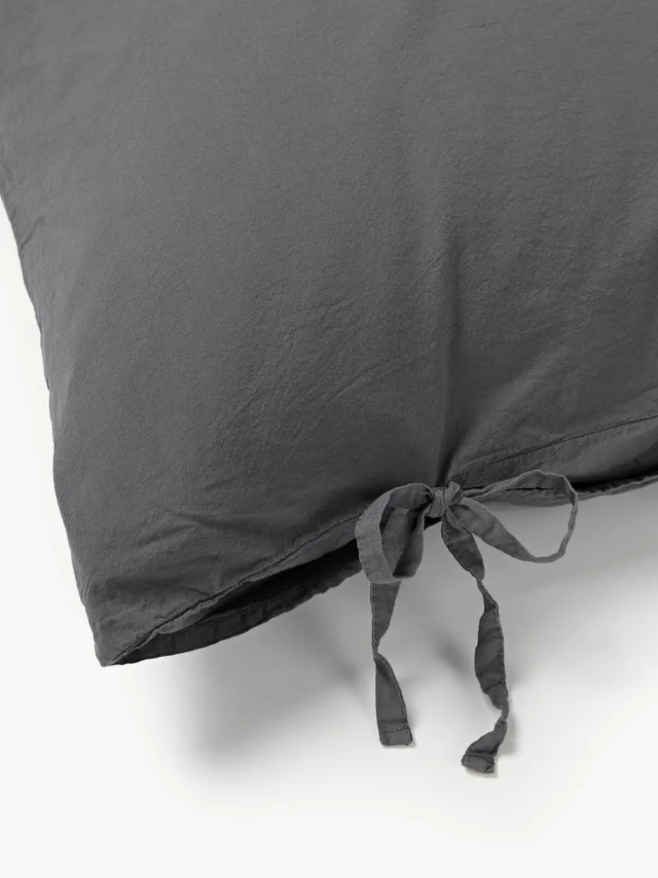 Der Kopfkissenbezug verfügt über einen Schleifenverschluss und wurde in Portugal gefertigt.