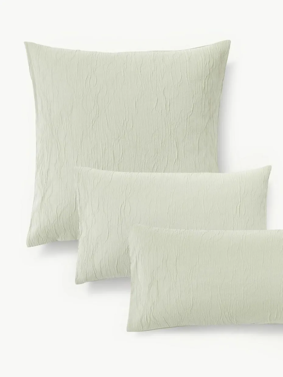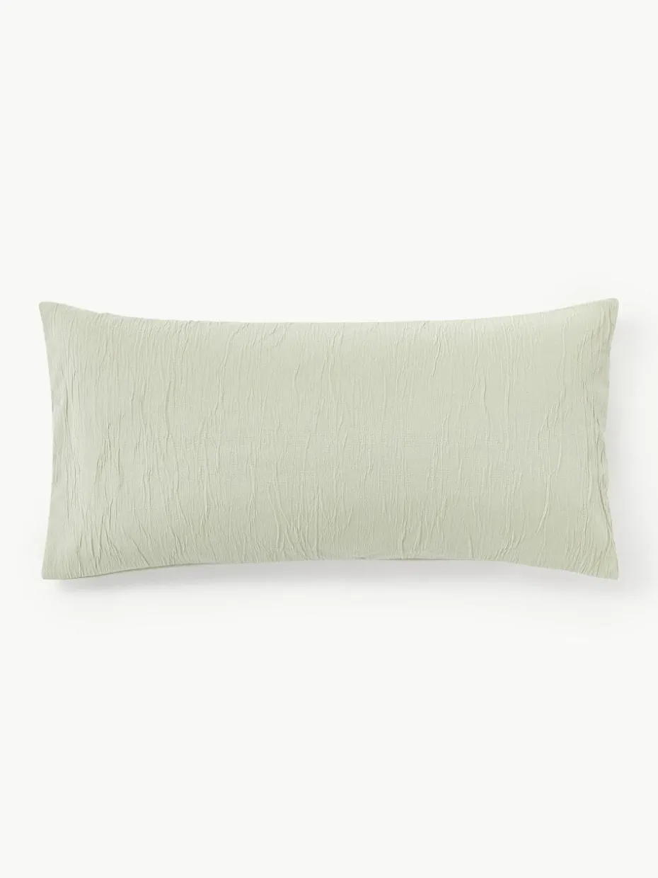 Der Kopfkissenbezug mit strukturierter Vorderseite verfügt über einen Knopfverschluss und wurde in Portugal gefertigt.