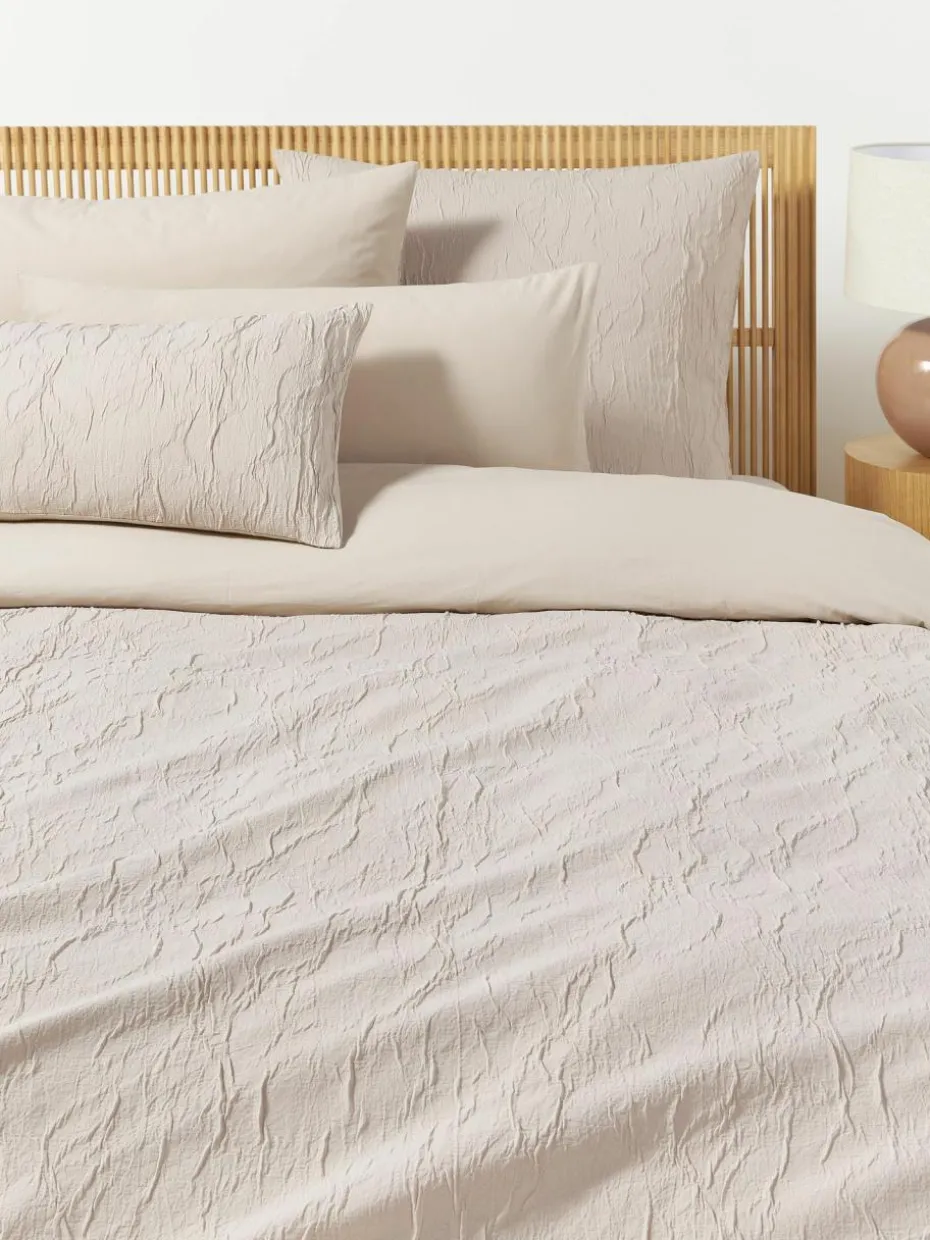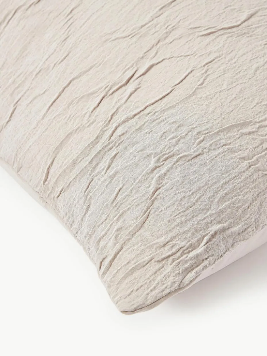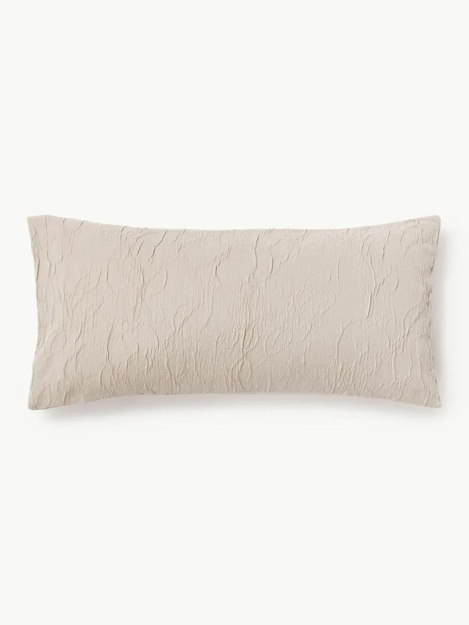 Der Kopfkissenbezug mit strukturierter Vorderseite verfügt über einen Knopfverschluss und wurde in Portugal gefertigt.