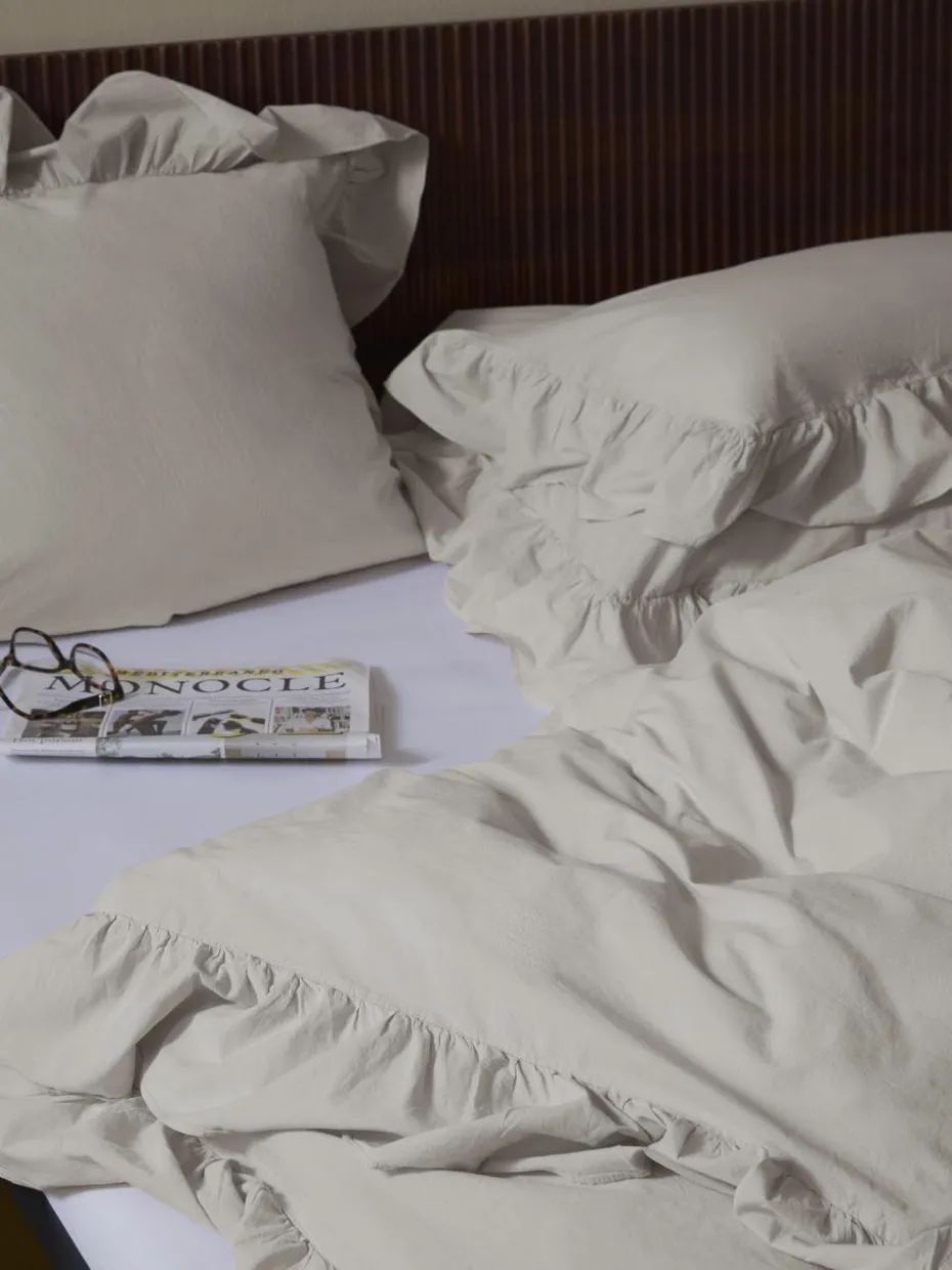 Der Baumwoll-Kopfkissenbezug verfügt über einen Knopfverschluss und wurde in Portugal gefertigt.