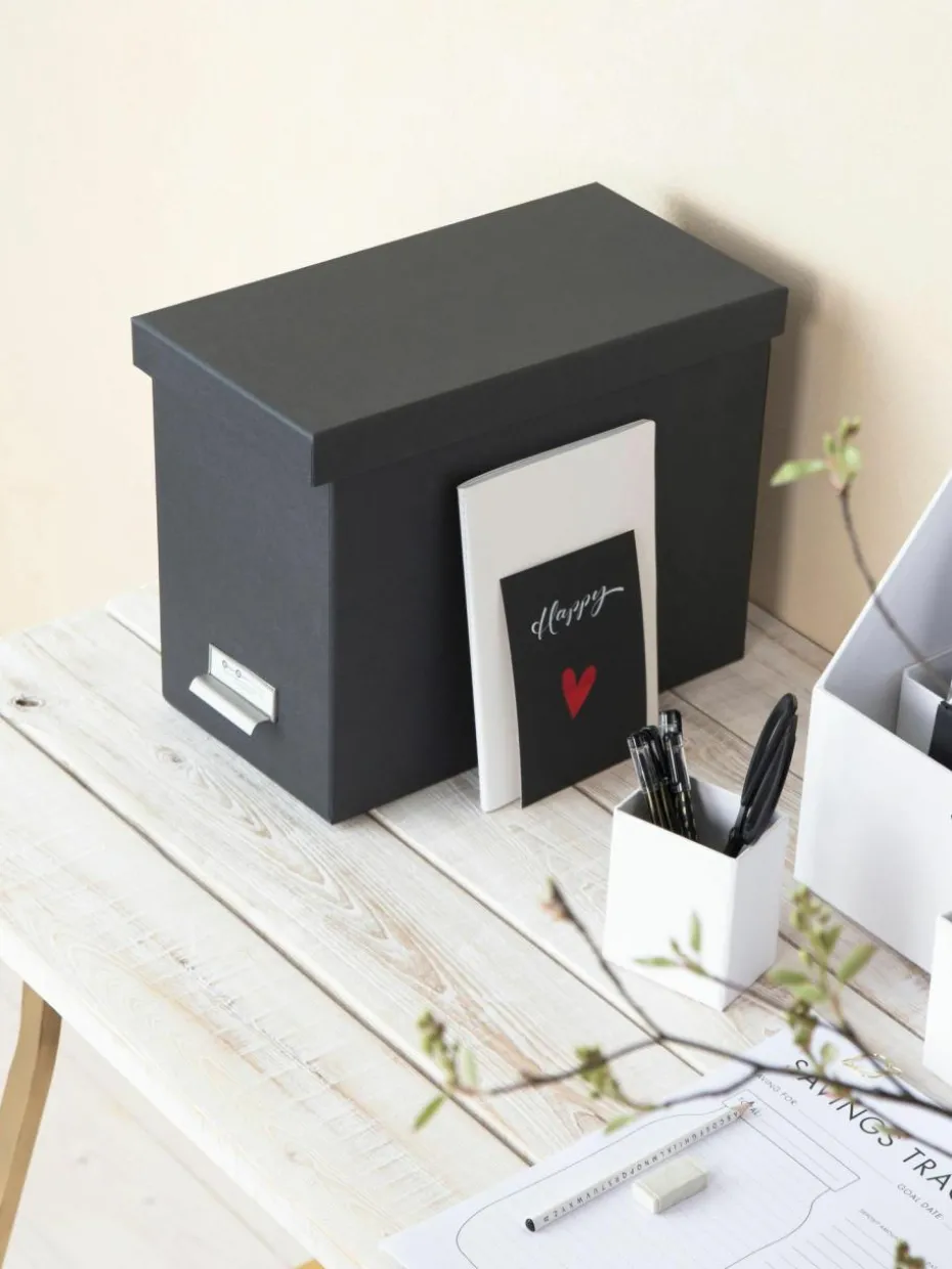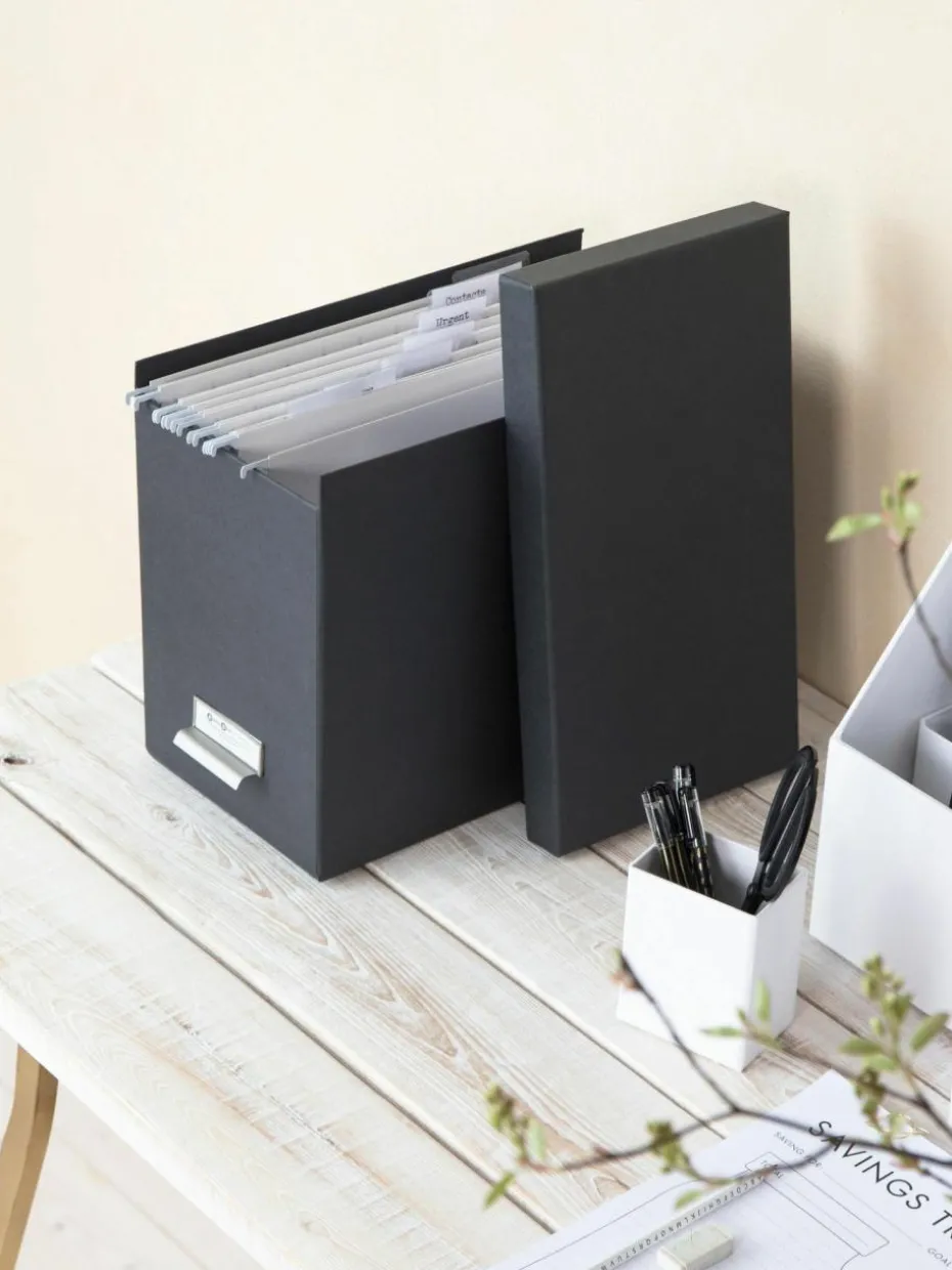 Steigere Deine Effizienz, indem Du Deinen Papierkram in dieser attraktiven Ablagebox aufbewahrst und ordnest. Die mitgelieferten Hängemappen halten Deine Dokumente wie Rechnungen, Rezepte, Produkthandbücher und Garantien getrennt und ermöglichen Dir einen schnellen und einfachen Zugriff auf jede Akte. So hast Du alle wichtigen Dokumente immer griffbereit, aber gleichzeitig weit weg von Deinem Schreibtisch. Füge eine gut aussehende Möglichkeit hinzu, all Deine losen Papiere zu ordnen.