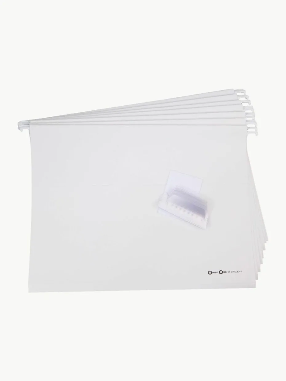 Die Hängeregister-Box mit acht Mappen und einem Deckel ist für Dokumente bis DIN A4-Format geeignet.