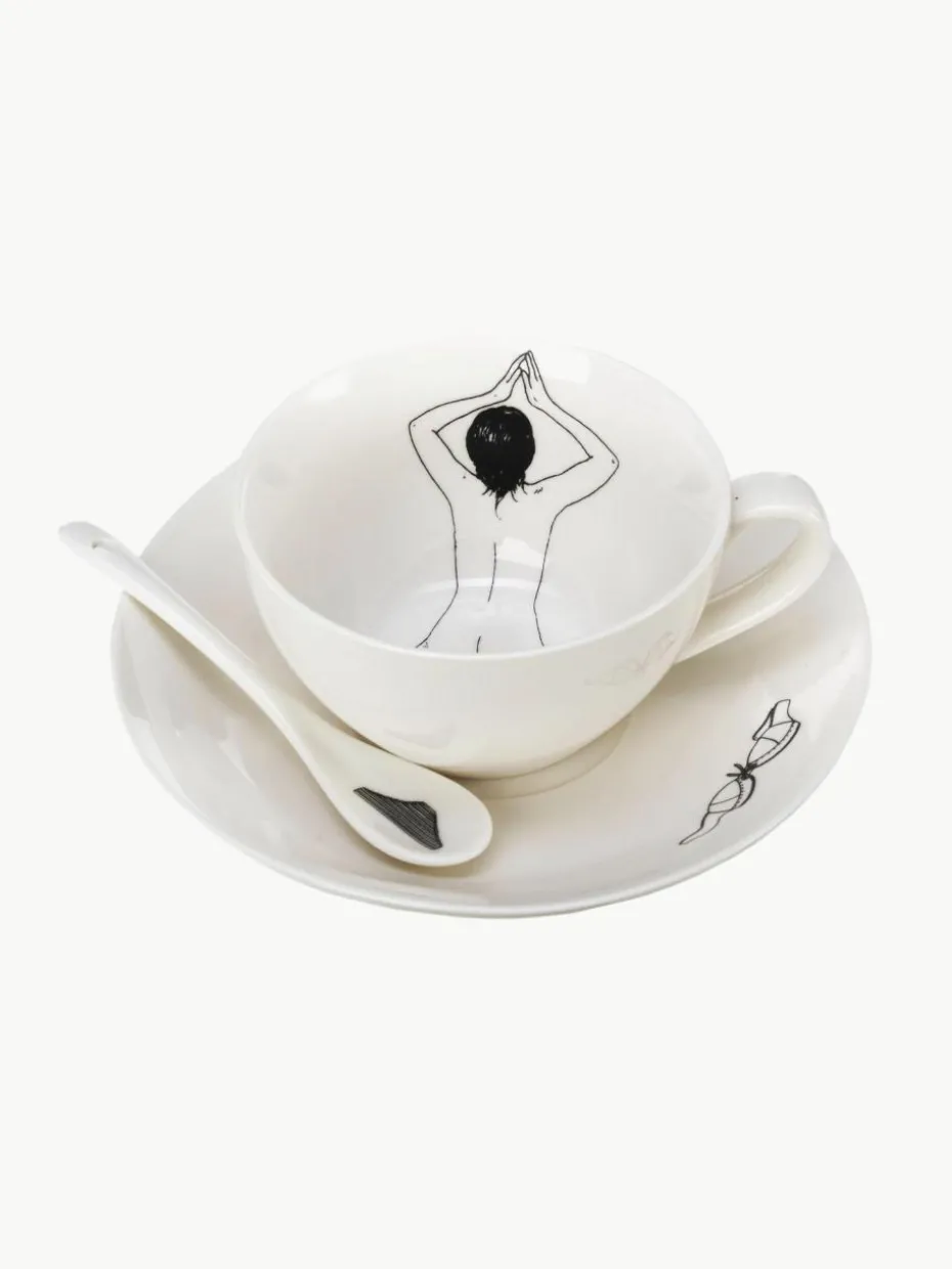 Einzigartig sind die Undressed Tassen von Esther Hörchner. Ihre zarten Kunstwerke sind handgezeichnet mit einem weichen Bleistift und feinem Liner. Sie drückte gerne ihre Liebe zu skurrilen Details und versteckten Höflichkeiten aus, indem sie die badenden Damen in Teetassen zeichnete. Wir wetten, dass Deine Teezeit noch nie so nackt war.“,“pdp_care_label“:“Spülmaschinengeeignet
