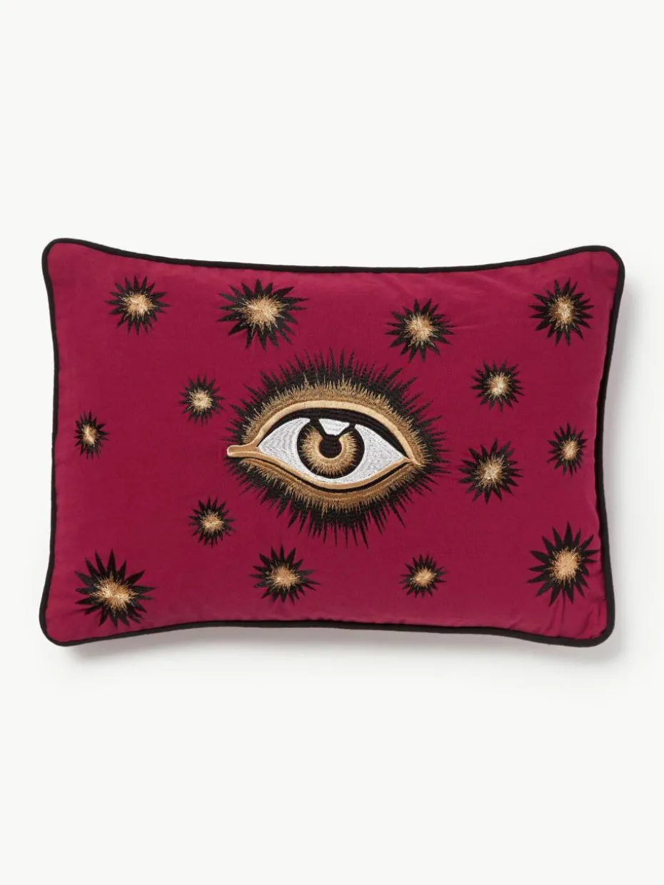 Der Zauber des Auges liegt in diesem handbestickten Kissenhüllen, das Deinem Sofa oder Raum eine mystische Note verleiht und in verschiedenen Farben erhältlich ist.