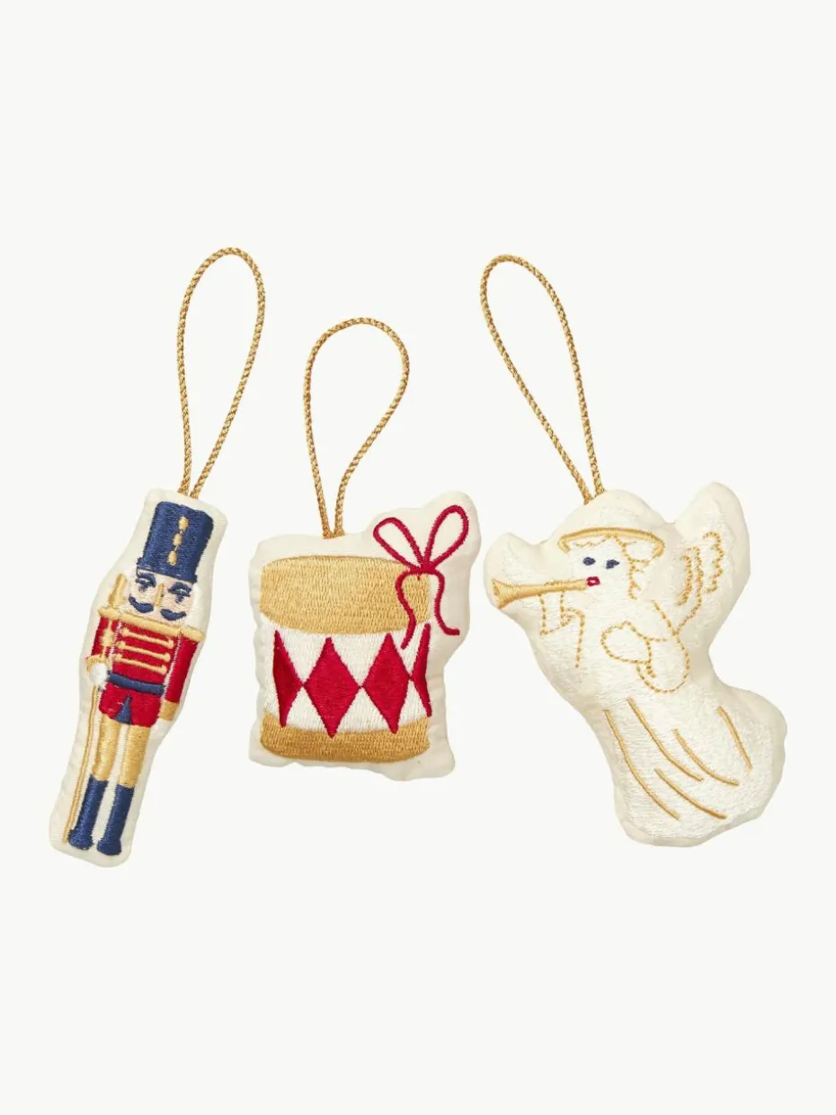 Handbestickte Stoff-Baumanhänger Nutcracker, 3er-Set