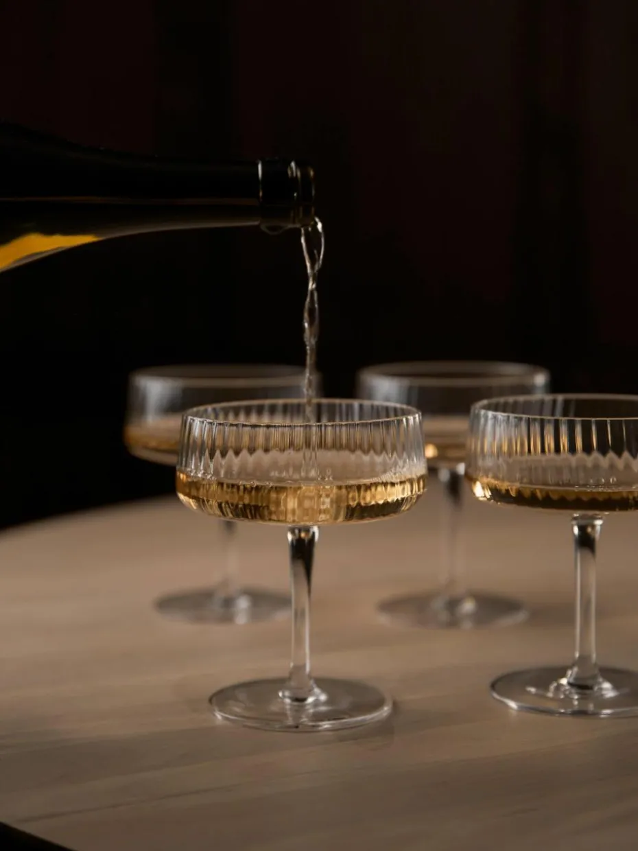 Handgefertigte Champagnerschalen Cami mit Rillenstruktur, 4 Stück