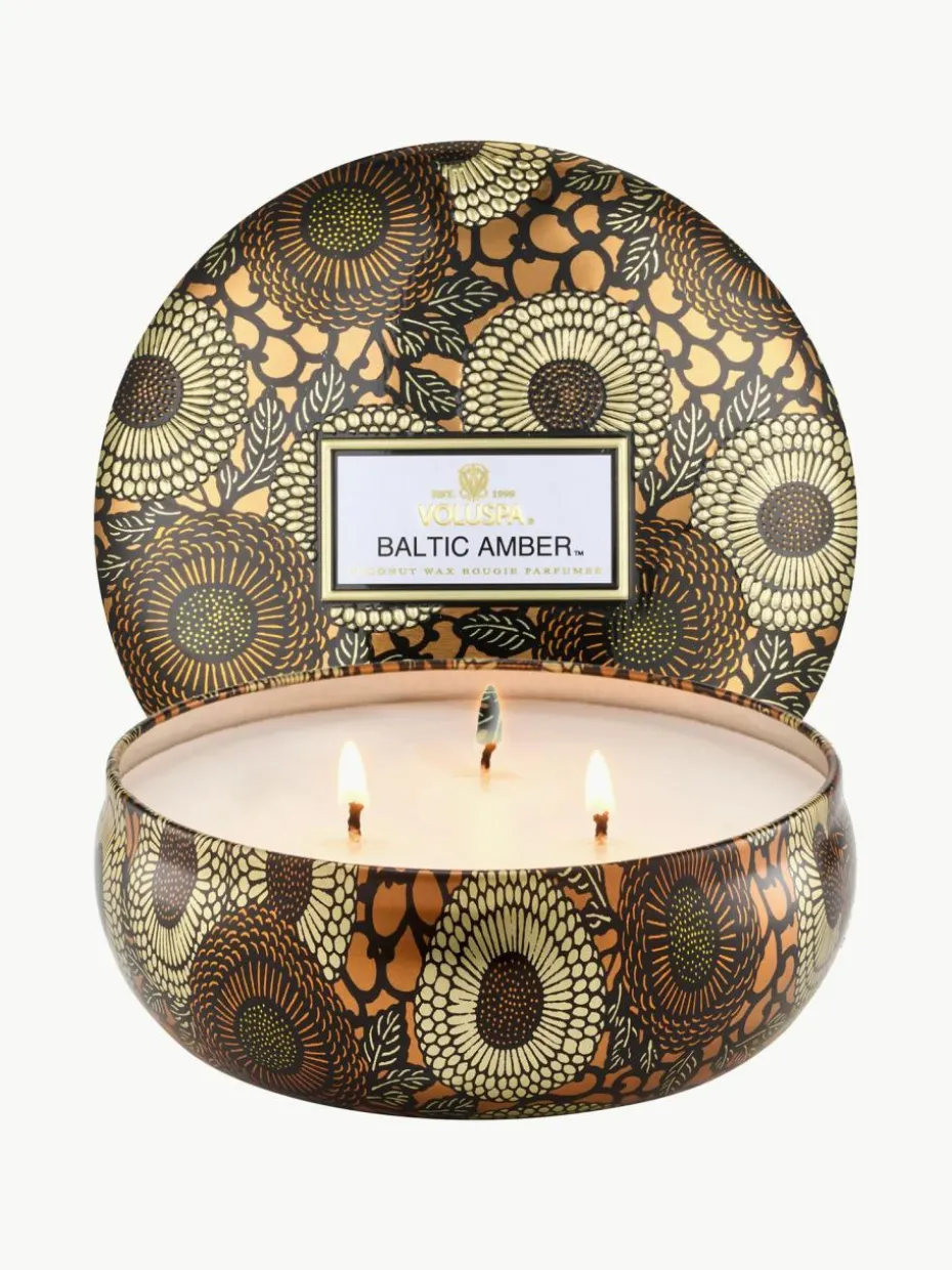 Erwärme das Ambiente mit einer sinnlichen Soirée aus honigsüßem Bernstein, samtigen Hölzern und dem reichhaltigen Duft von Vanilleorchidee, die zum Schwelgen einlädt. Lasse Dich von dem goldenen Glanz verzaubern, der eine lang anhaltende Wärme ausstrahlt. Tauche ein in Baltic Amber und erlebe die Magie.“,“pdp_care_label“:“Brenndauer: ca. 40 Stunden