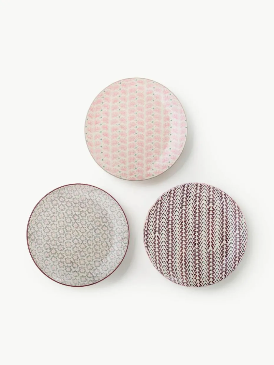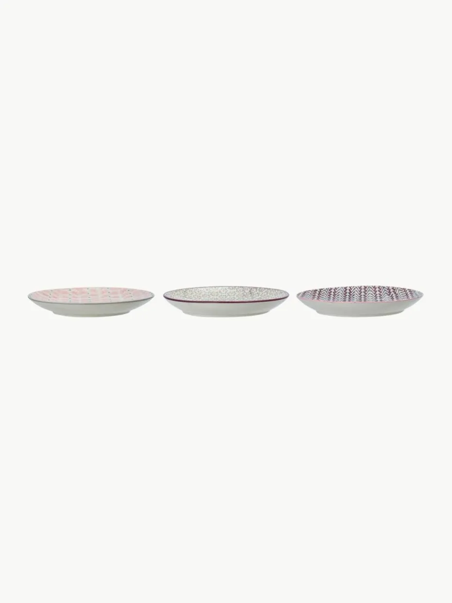 Handgefertigte Frühstücksteller Maya mit verspieltem Muster, 3er-Set