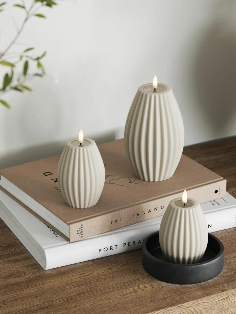 Handgefertigte LED-Kerze Round Stripe, H 10 cm