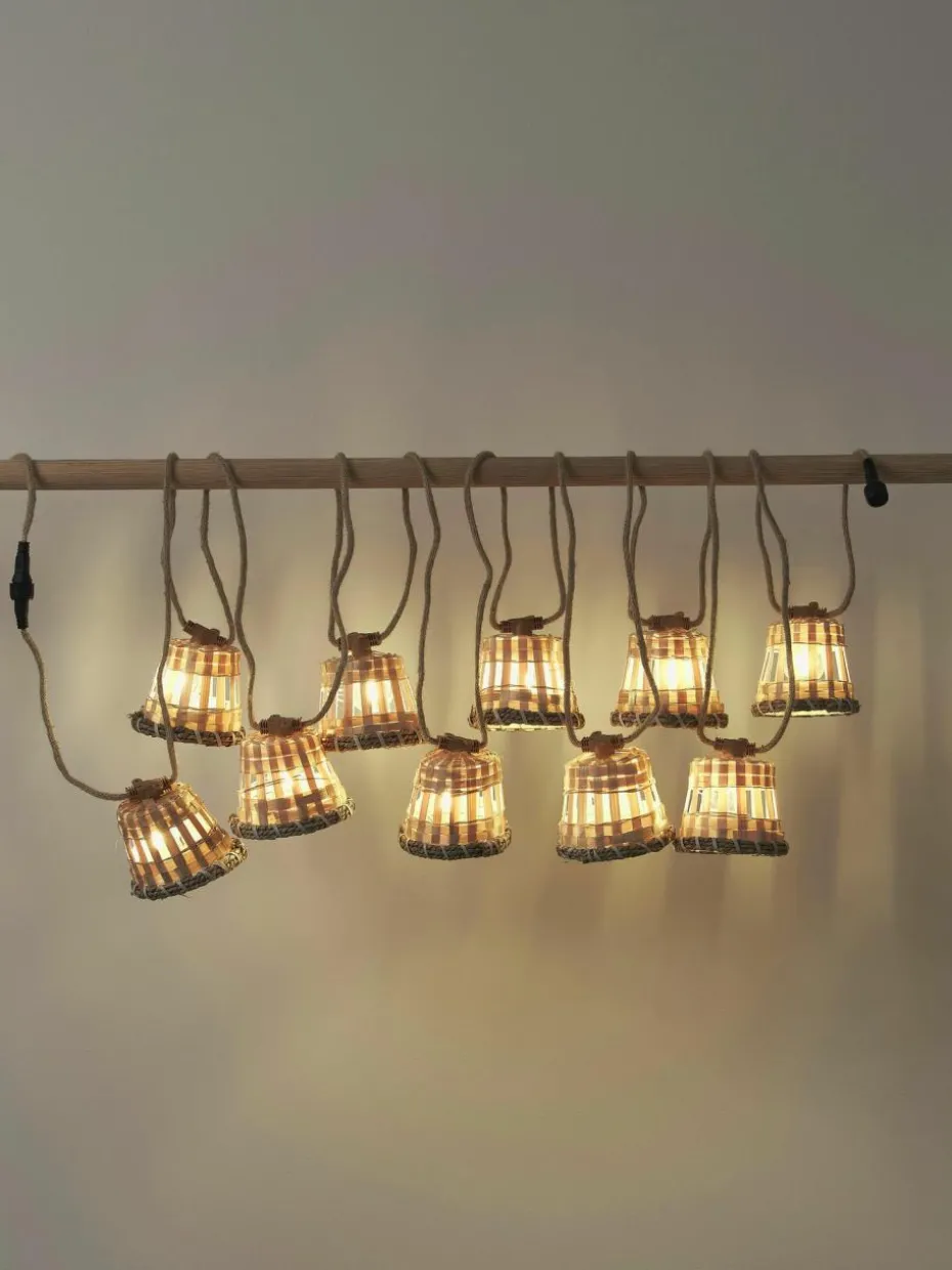 Lichterkette mit 10 Lampions, zum Anschluss an eine Steckdose. Die Lichterkette leuchtet warmweiß.