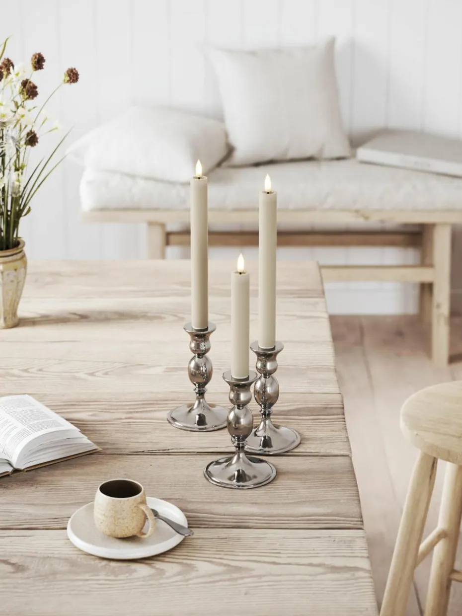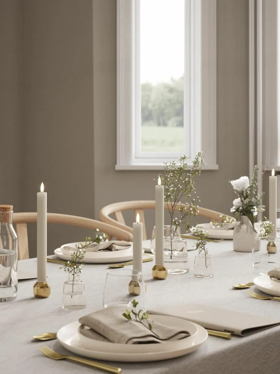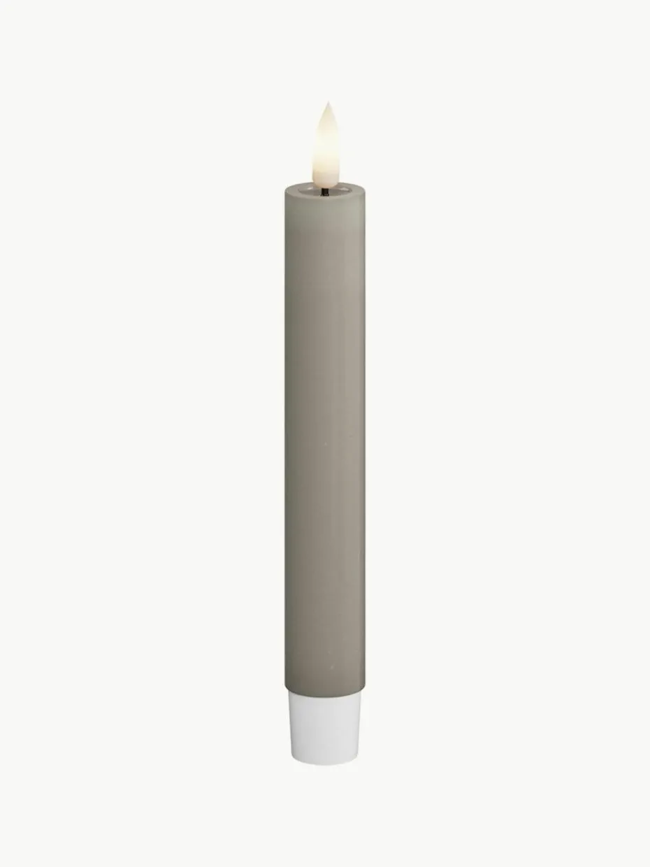 Entdecke die raffinierte Schönheit und einzigartige Anziehungskraft der LED-Stabkerzen mit Wetlook-Design. Dieses besondere Detail erhöht die Realitätsnähe der künstlichen Lichter, indem die bewegliche LED-Flamme wunderschön auf der Oberfläche reflektiert wird und ein warmes, einladendes Licht erzeugt. Diese Technik stellt sicher, dass jede LED-Stabkerze nicht nur Dein Zuhause erhellt, sondern auch einen Hauch von ästhetischer Raffinesse hinzufügt, der jede Einrichtung perfekt ergänzt.“,“pdp_care_label“:“2 benötigte Batterien je Kerze, Typ AAA, sind nicht im Lieferumfang enthalten