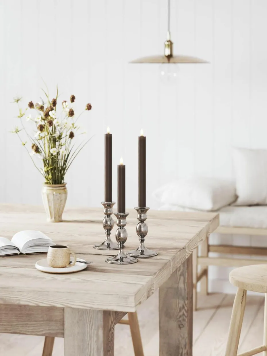 Entdecke die raffinierte Schönheit und einzigartige Anziehungskraft der LED-Stabkerzen mit Wetlook-Design. Dieses besondere Detail erhöht die Realitätsnähe der künstlichen Lichter, indem die bewegliche LED-Flamme wunderschön auf der Oberfläche reflektiert wird und ein warmes, einladendes Licht erzeugt. Diese Technik stellt sicher, dass jede LED-Stabkerze nicht nur Dein Zuhause erhellt, sondern auch einen Hauch von ästhetischer Raffinesse hinzufügt, der jede Einrichtung perfekt ergänzt.“,“pdp_care_label“:“2 benötigte Batterien je Kerze, Typ AAA, sind nicht im Lieferumfang enthaltenr