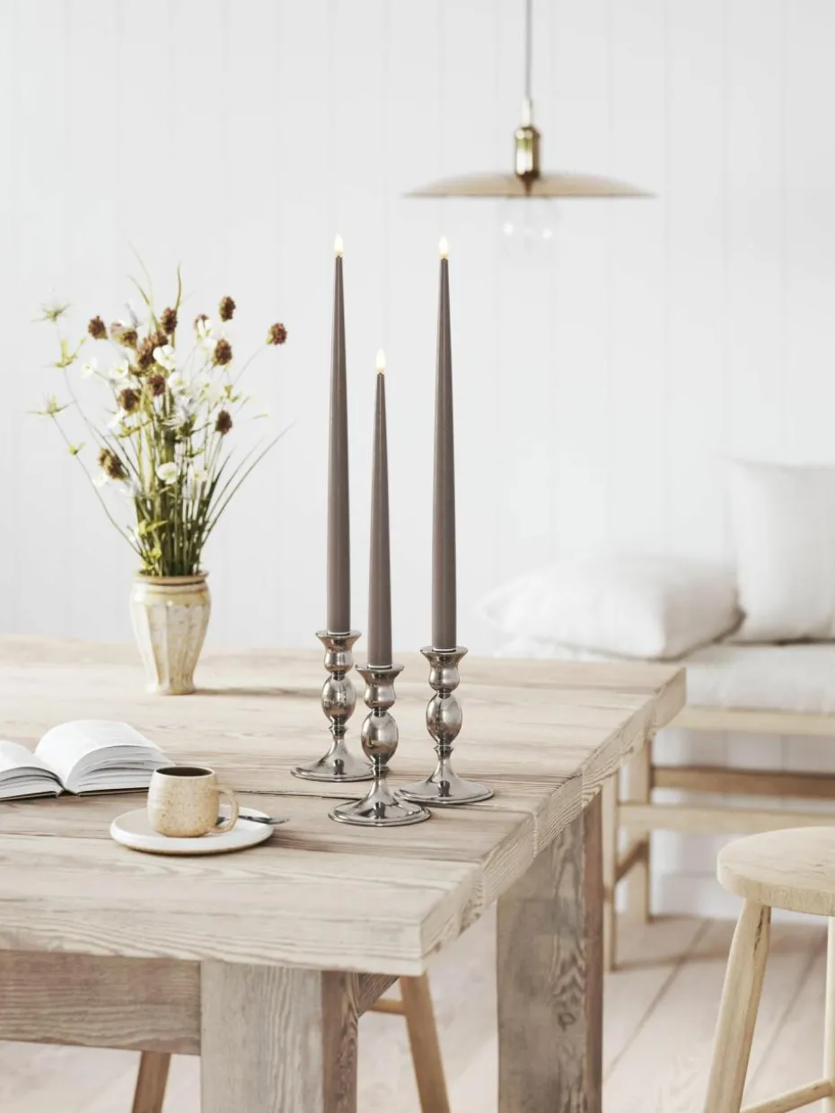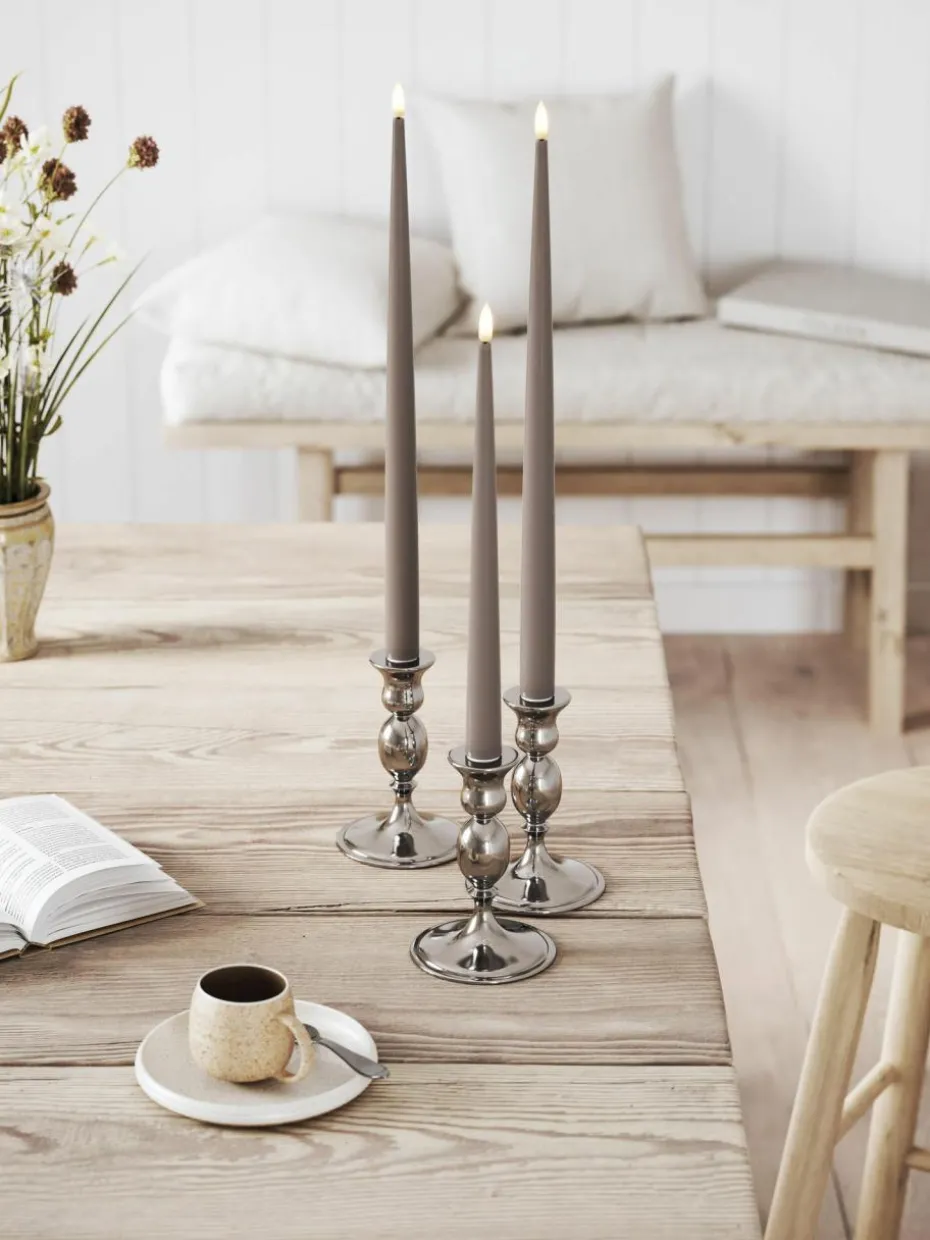 Die LED-Kerzen von Deluxe Homeart zeichnen sich durch ihr einzigartiges Design aus, das perfekt zu einem modernen Zuhause passt, ohne dabei den klassischen Charme zu verlieren. Sie sind elegant und jede Flamme wird sorgfältig mit der Real-Flame-Technologie gestaltet, die eine unglaublich realistische Leuchtkraft bietet.“,“pdp_care_label“:“2 benötigte Batterien je Kerze, Typ AAA, sind nicht im Lieferumfang enthalten