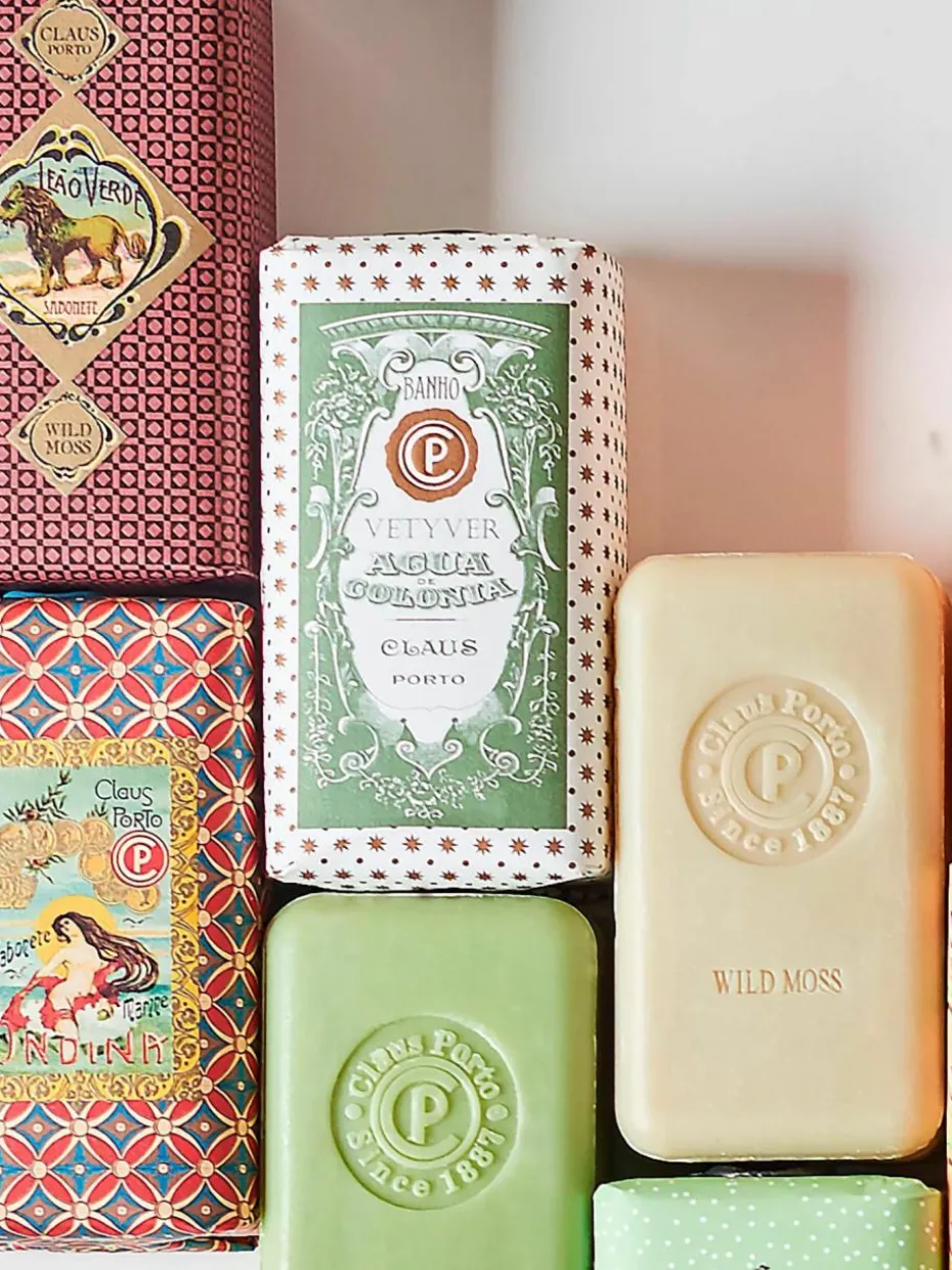Diese klassische und zeitlose Seife verleiht Dir einen Hauch von Eleganz. Die reichhaltige und seidige Formel von Agua de Colonia enthält Pistazienkernöl, um die Haut sanft zu reinigen und mit Feuchtigkeit zu versorgen. Jede Seife wird von Hand in eine exquisite Verpackung mit Designs verpackt, die auf Claus Portos hundertjährigem Grafikarchiv basieren, und präsentiert sich wie ein Kunstwerk – zeitlos und einzigartig.