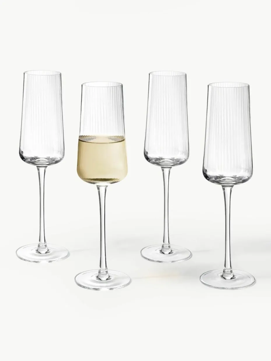 Handgefertigte Sektgläser Cami mit Rillenstruktur, 4 Stück