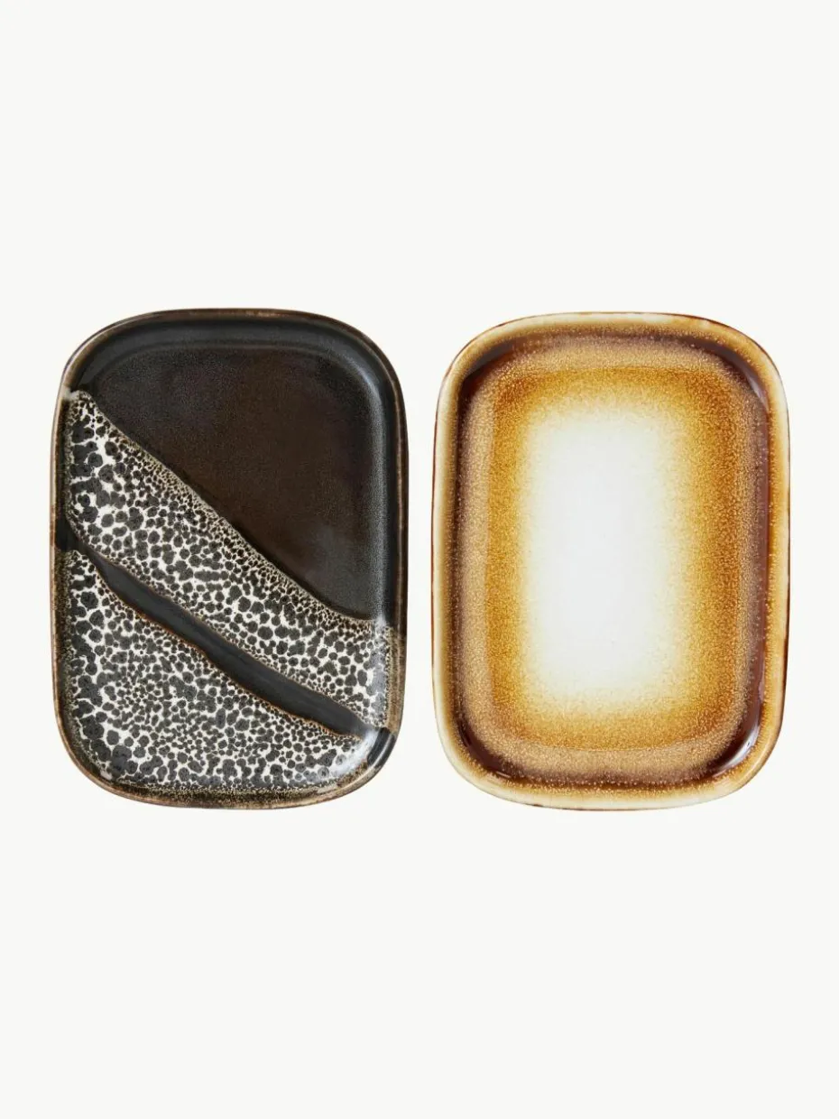 Handgefertigte Serviertabletts 70’s aus Steinzeug, 2er-Set