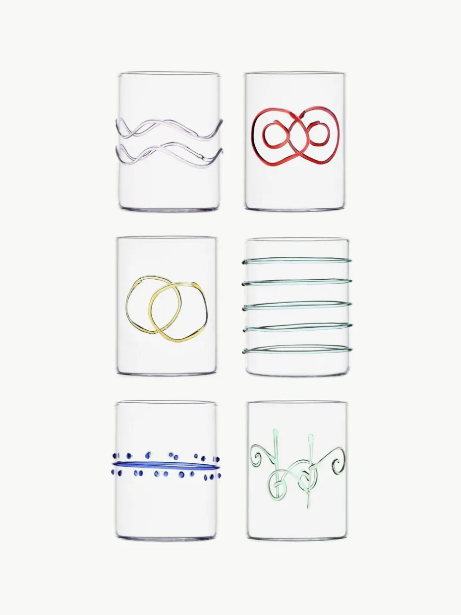Handgefertigte Wassergläser Deco‘ Arlecchino, 6er-Set