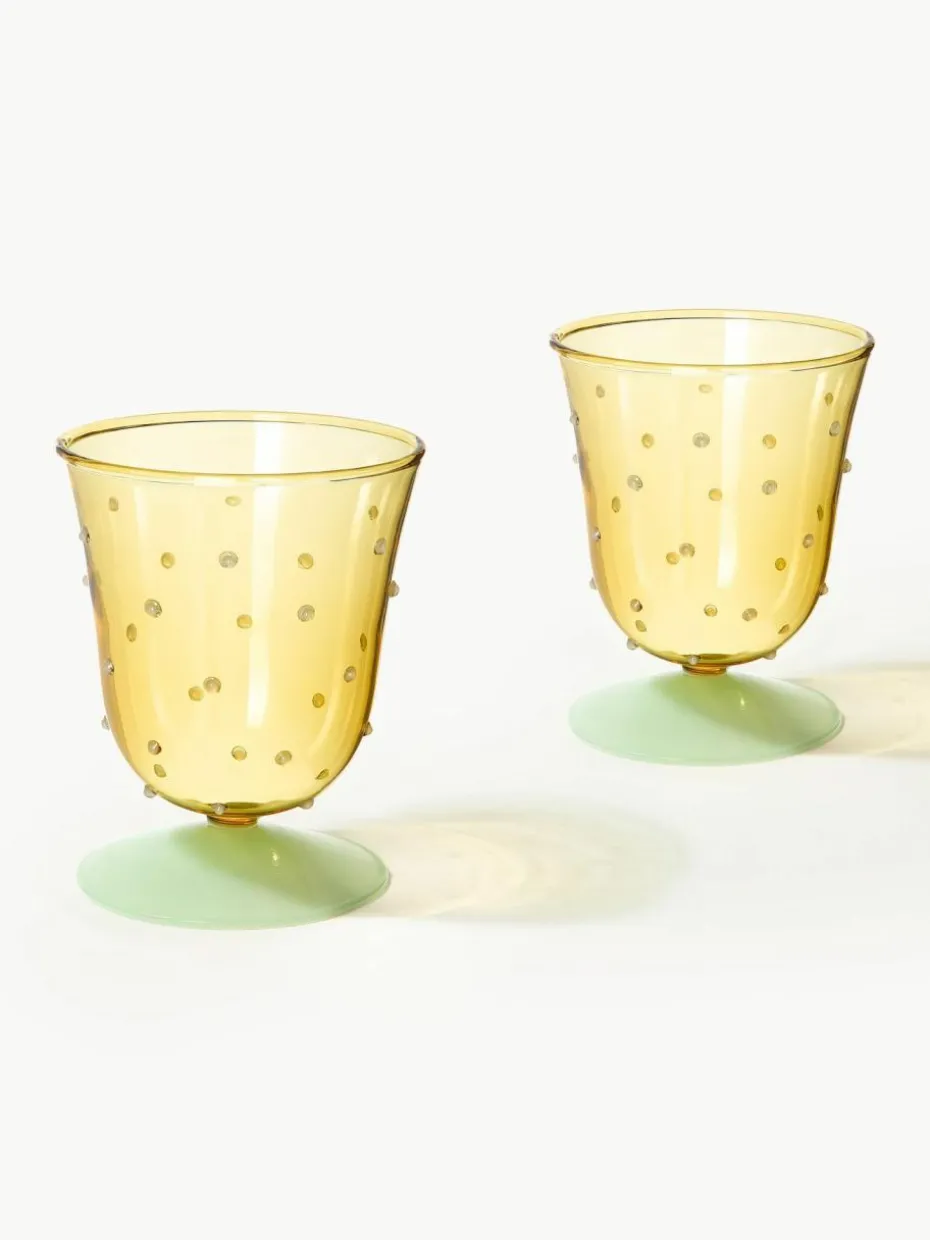 Handgefertigte Wassergläser Dot aus Borosilikatglas, 2 Stück