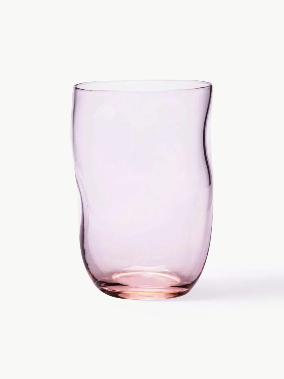 Die bezaubernde, organische Form dieser Kollektion ist durch das Zusammendrücken des brennend heißen Glases mit einem Tuch, entstanden, wodurch sichergestellt wird, dass die Stücke nie gleich sind. Aufgrund ihrer weicher Form liegen die Wassergläser perfekt in der Hand und sind somit ebenso praktisch wie charmant.