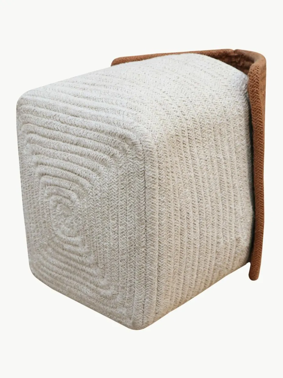 Dekorativer Korb in Form eines Hauses. Hergestellt aus extra dicken geflochtenen Baumwollkordeln und handgefertigt in quadratischer Form, wird der Korb von einem Giebeldach in Kontrastfarbe mit ausgeschnittenen Fenstern gekrönt. Das Dach ist am unteren Teil des Korbs befestigt und lässt auf beiden Seiten eine dreieckige Öffnung frei, die als Stauraum dient.