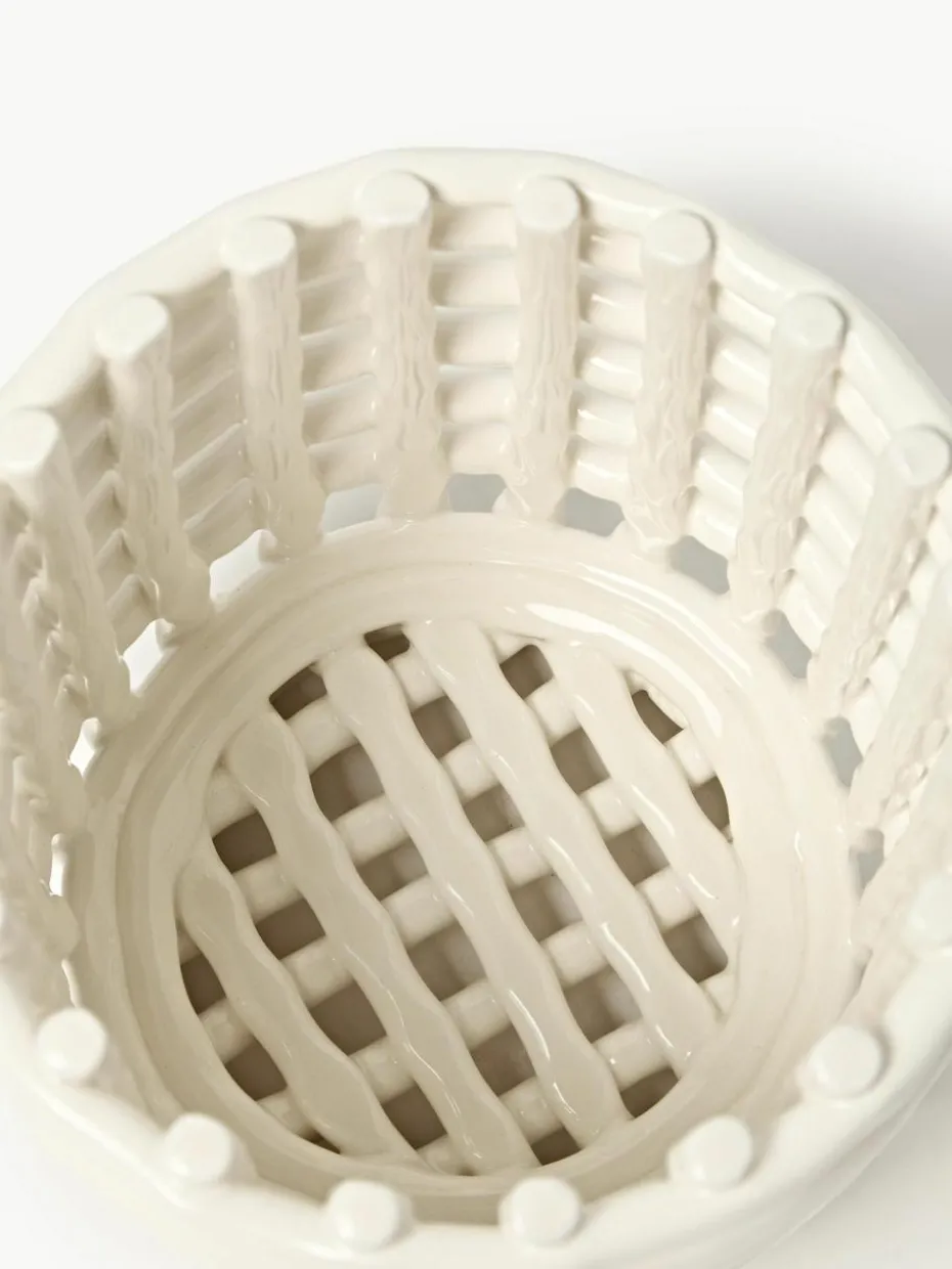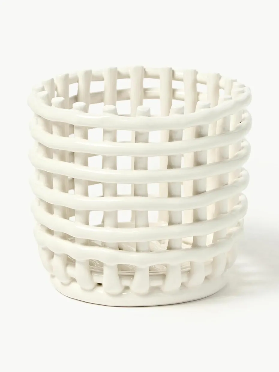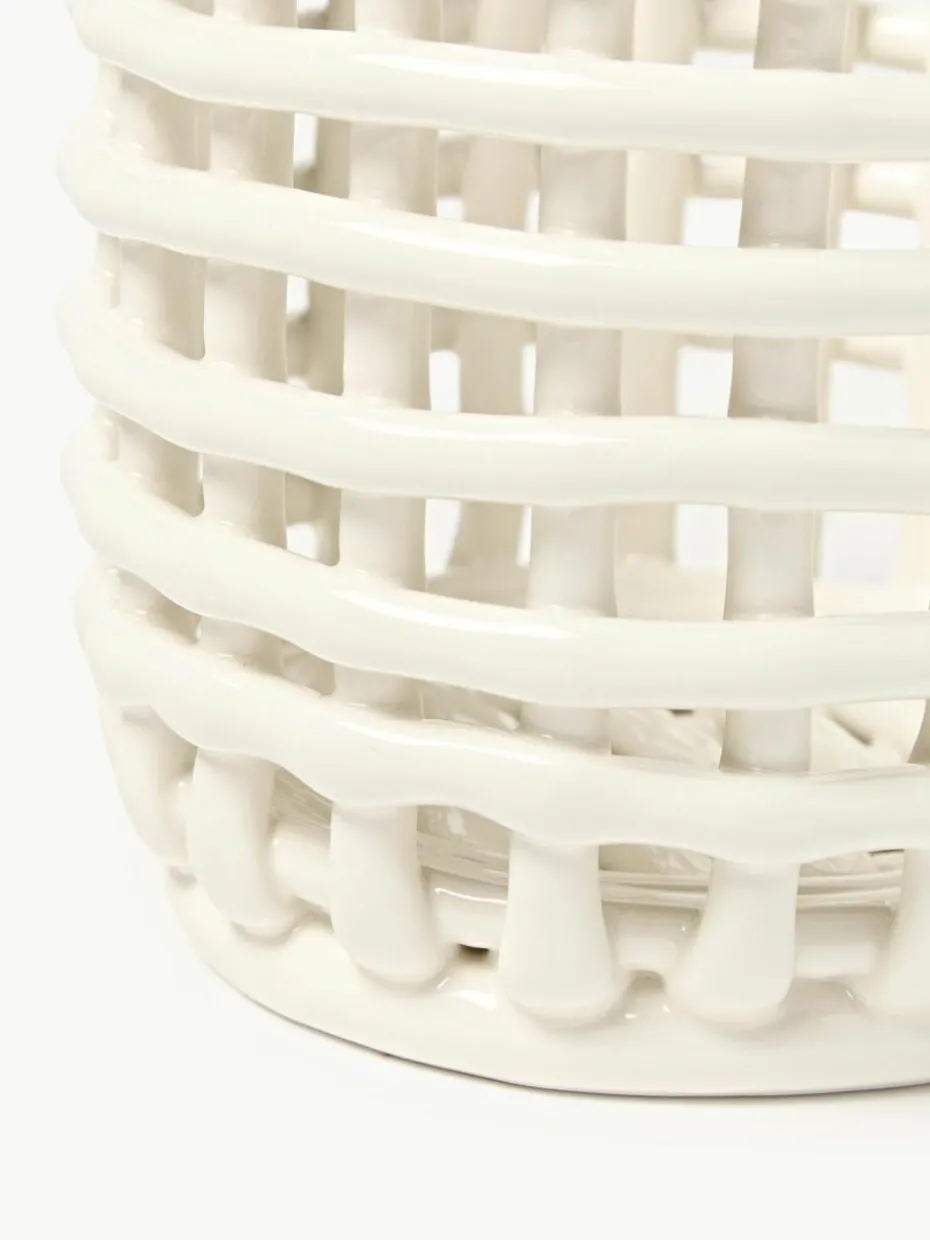 Der handgemachte Nalan Aufbewahrungskorb erweckt das vertraute Gefühl von geflochtenen Behältern und bringt die traditionelle Korbflechterei zur Keramik. Das multifunktionale Design kann als Blumentopf, Obstschale oder als dekorativer Mittelpunkt in einem Raum verwendet werden. Der von Hand geformte und auf kunstvolle Art uneben gefertigte Korb ist jeweils einzigartig.