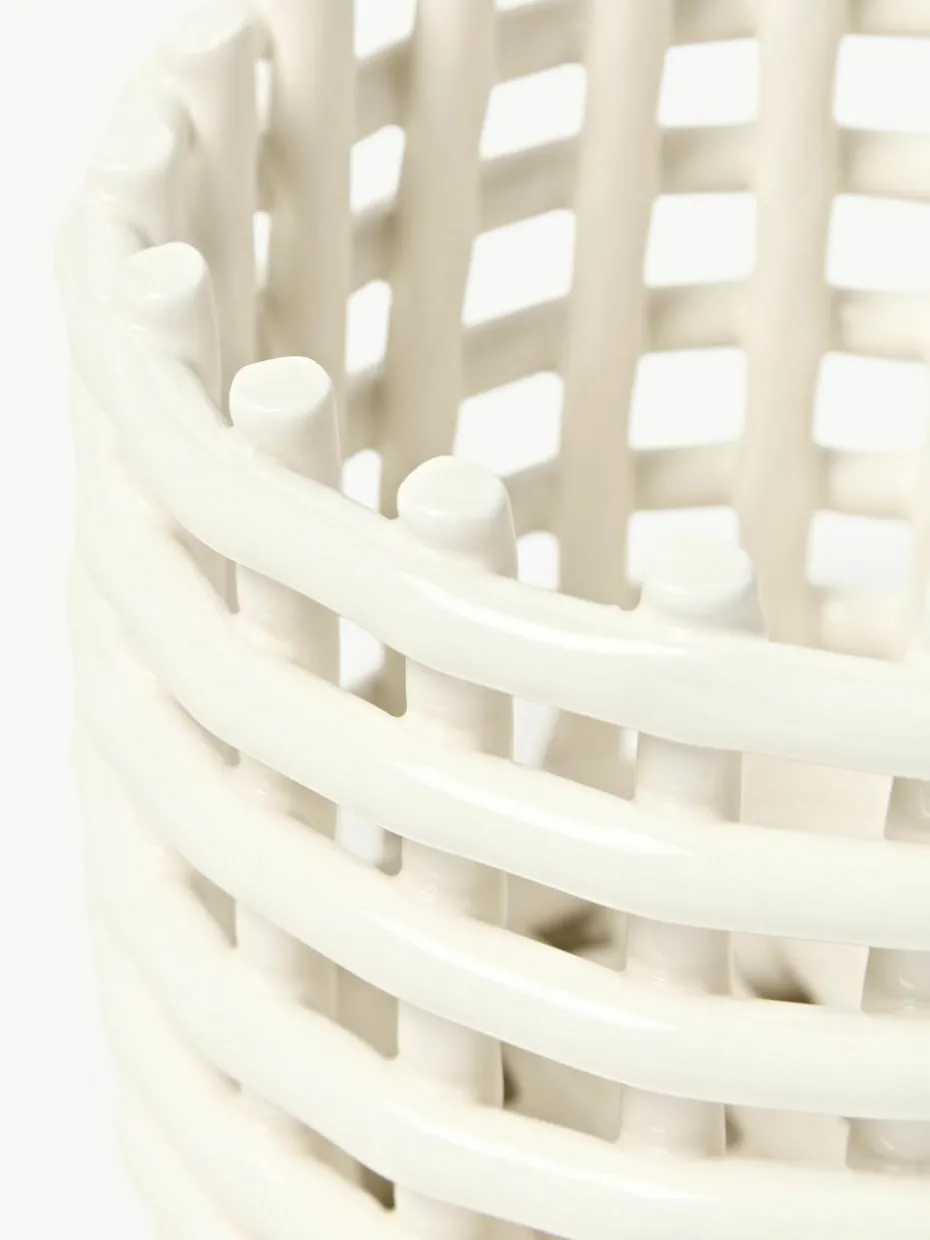 Handgefertigter Aufbewahrungskorb Nalan aus Keramik, H 15 cm