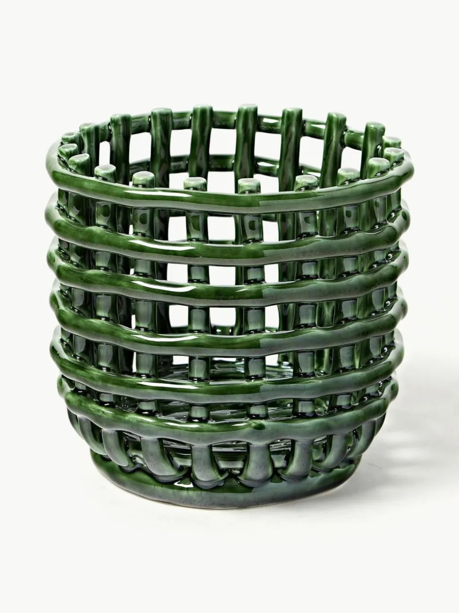 Handgefertigter Aufbewahrungskorb Nalan aus Keramik, H 15 cm