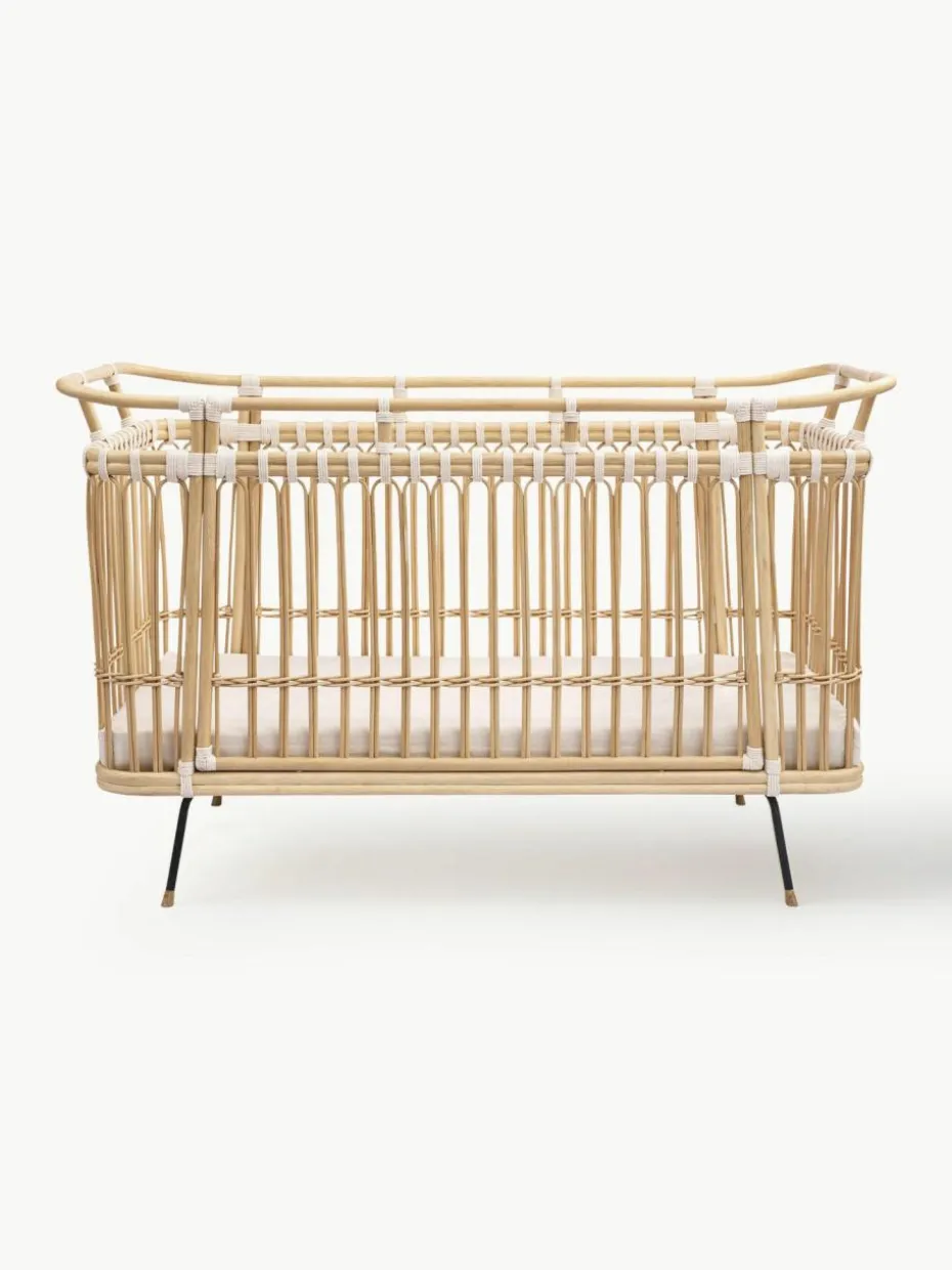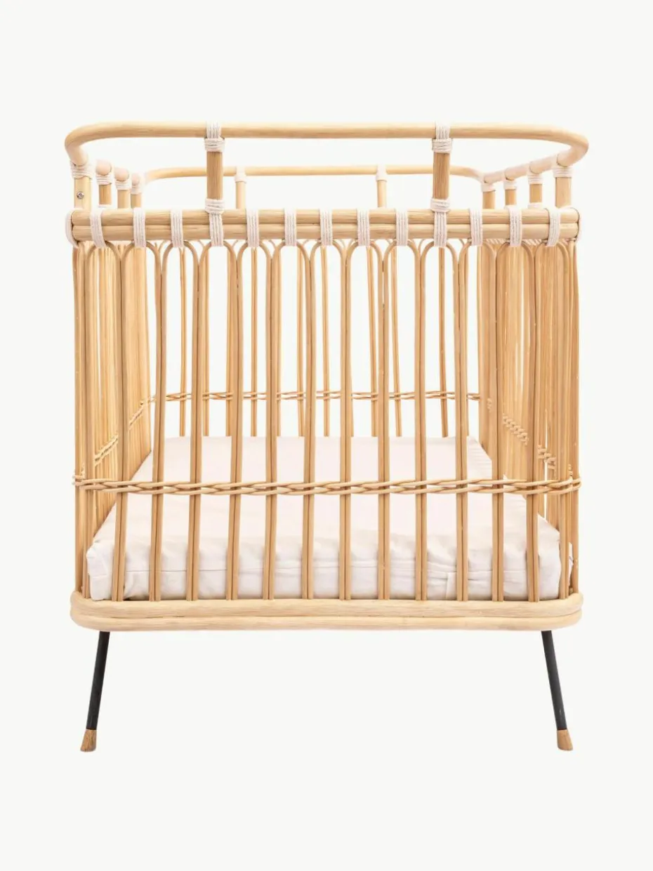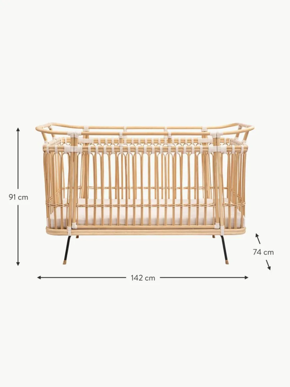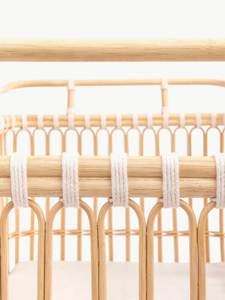 Wie die anderen Betten vereint auch Paul seine Leichtigkeit mit großer Stabilität. Besonders hier harmonieren Stahl- und Mangoholzfüße perfekt mit den Formen des Bettes. Baumwoll-Seile wurden kreuzförmig um die Rattanstäbe geflochten. Ebenso wie bei den anderen Modellen werden Körper und Füße mit Schrauben verbunden.