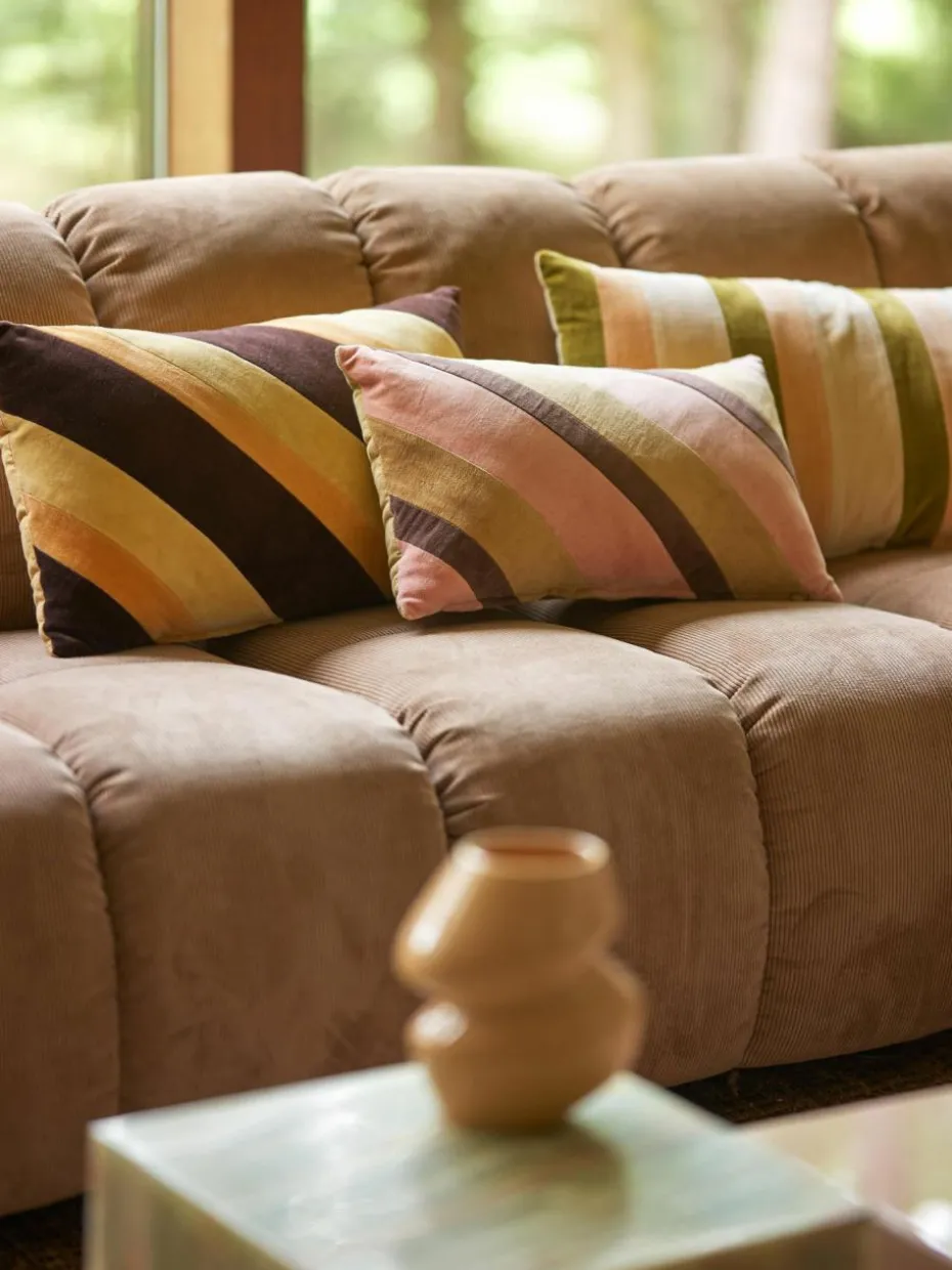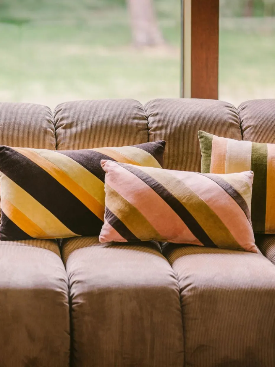 Die gestreiften Samtkissen haben das Zeug zum Auffallen. Deine üppigen Texturen und aufregenden Farbkombinationen machen sie perfekt zum Mischen und Kombinieren oder als Blickfang in einer dezenten Komposition.r